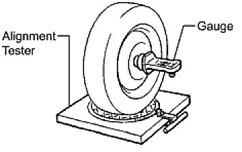(a) Install the camber-caster-kingpin gauge or place the front wheels on the center of the wheel alignment tester.