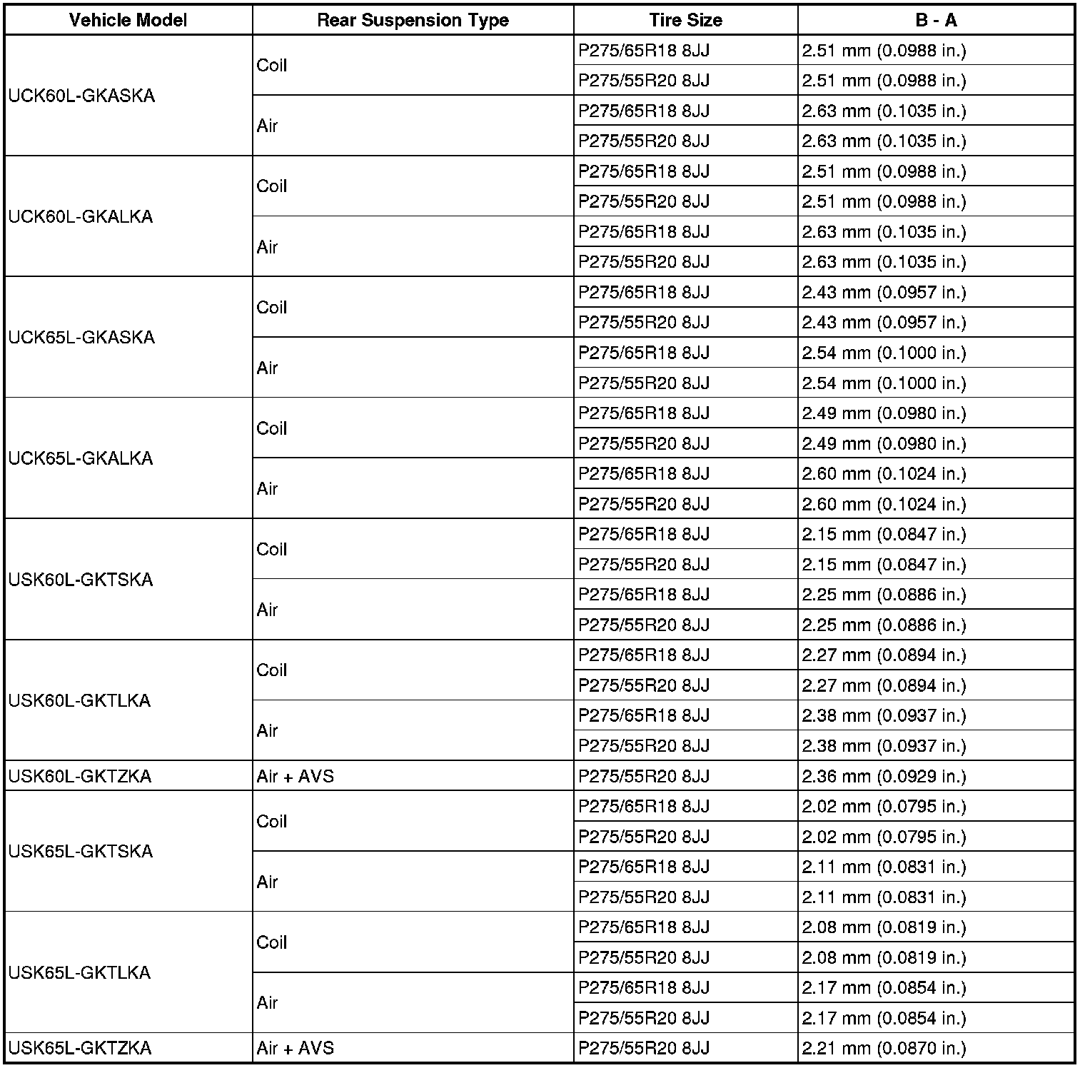 Standard Vehicle Height (Unloaded Vehicle):