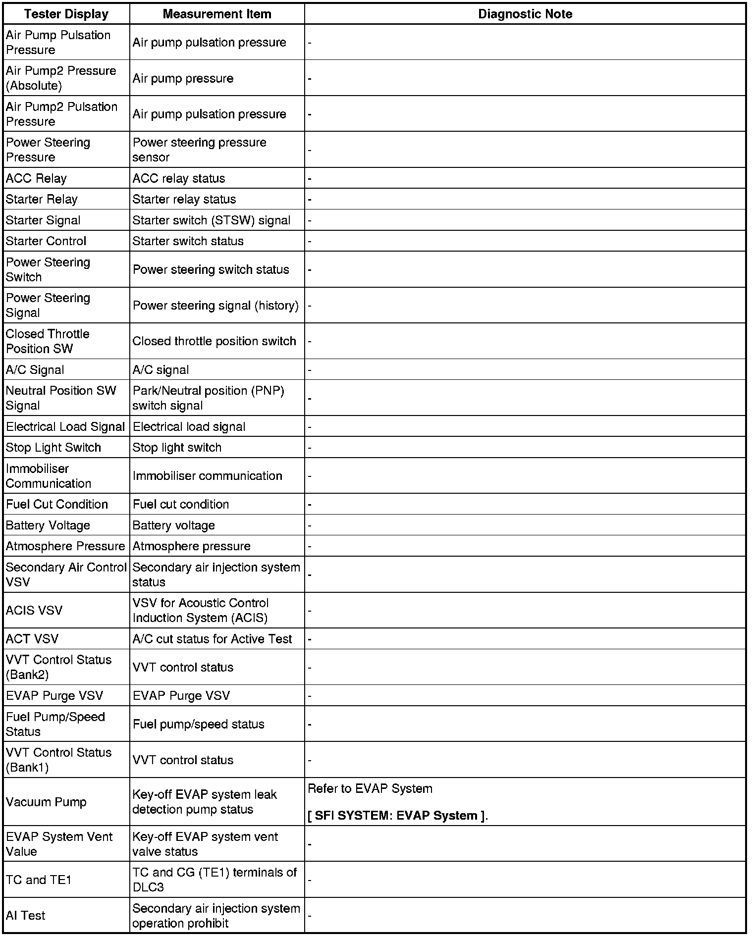 2UZ-FE ENGINE CONTROL: SFI SYSTEM: FREEZE FRAME DATA