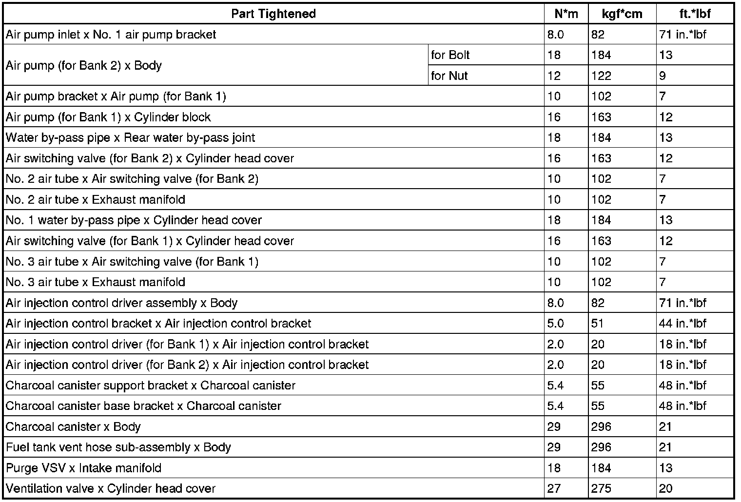 SPECIFICATIONS: 2UZ-FE EMISSION CONTROL: TORQUE SPECIFICATIONS