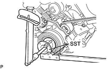 CRANKSHAFT PULLEYUsing SST, hold the crankshaft pulley and install the pulley bolt.