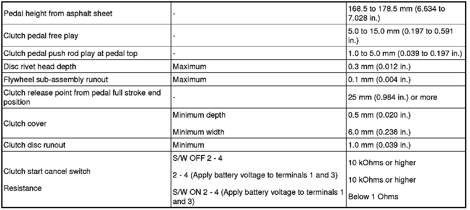 SERVICE SPECIFICATIONS: CLUTCH: SERVICE DATA
