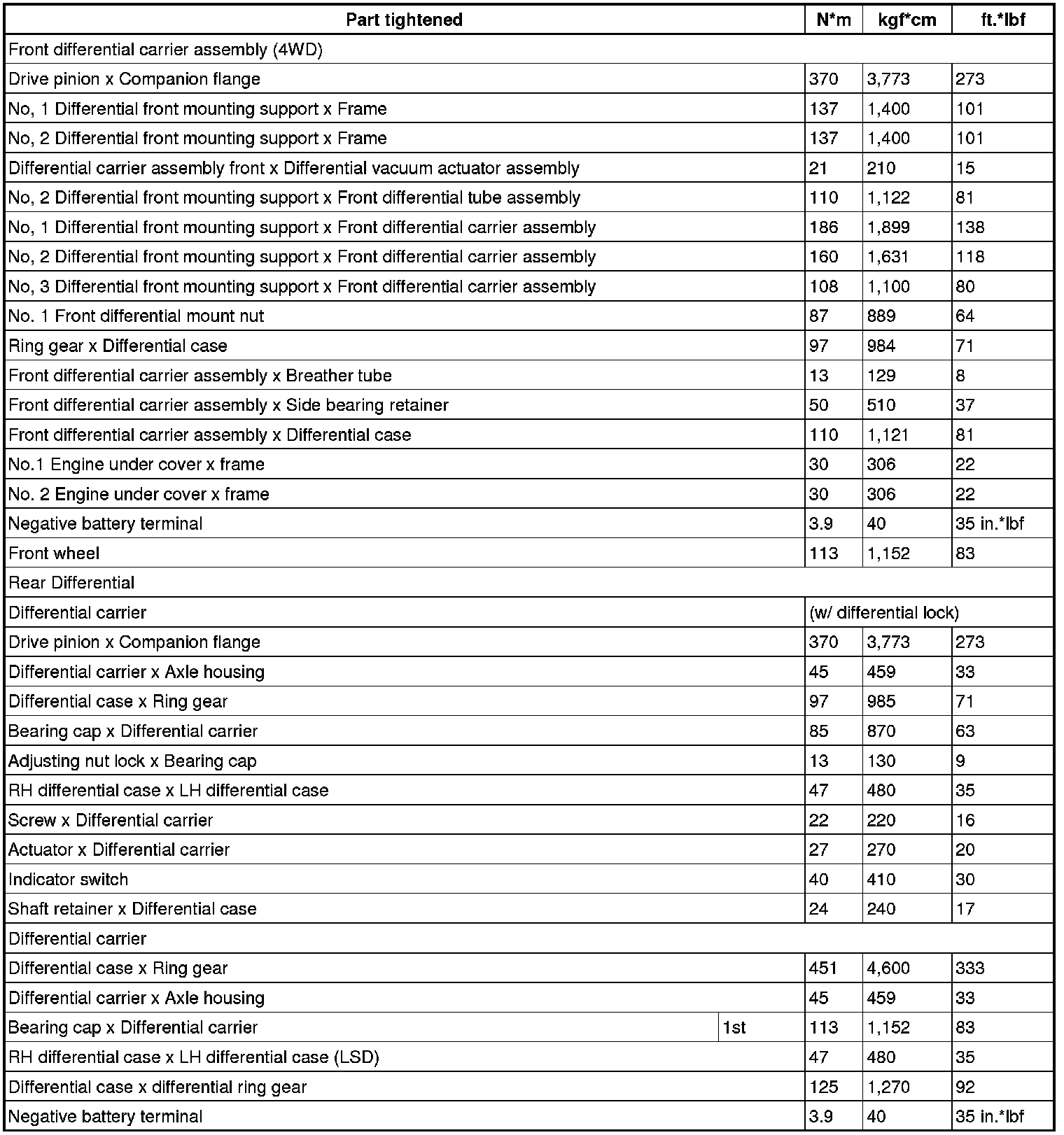 SERVICE SPECIFICATIONS: DIFFERENTIAL: TORQUE SPECIFICATIONS