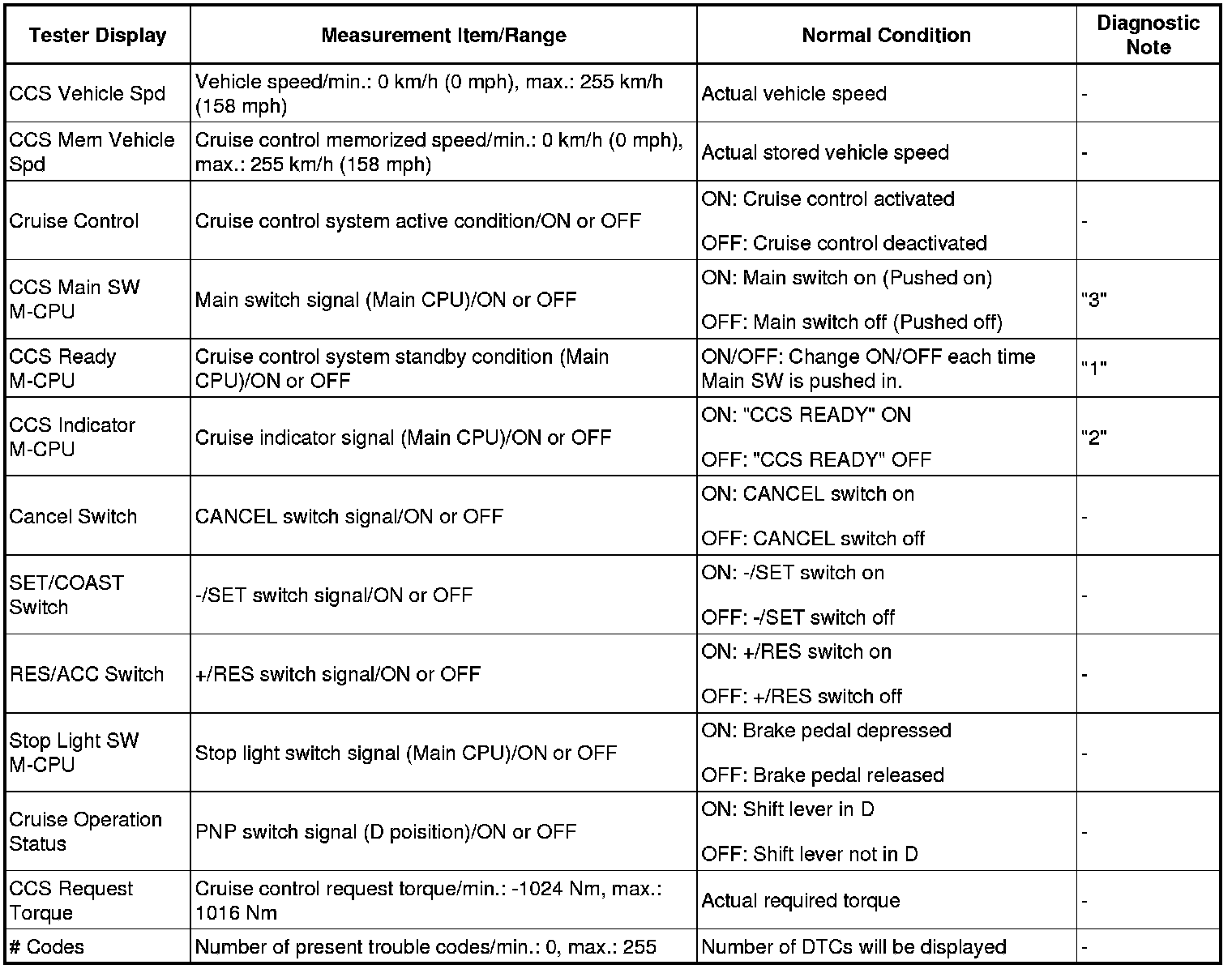 - "3" is OK but CRUISE indicator does not come on -> CRUISE main indicator, wire harness or ECM failure