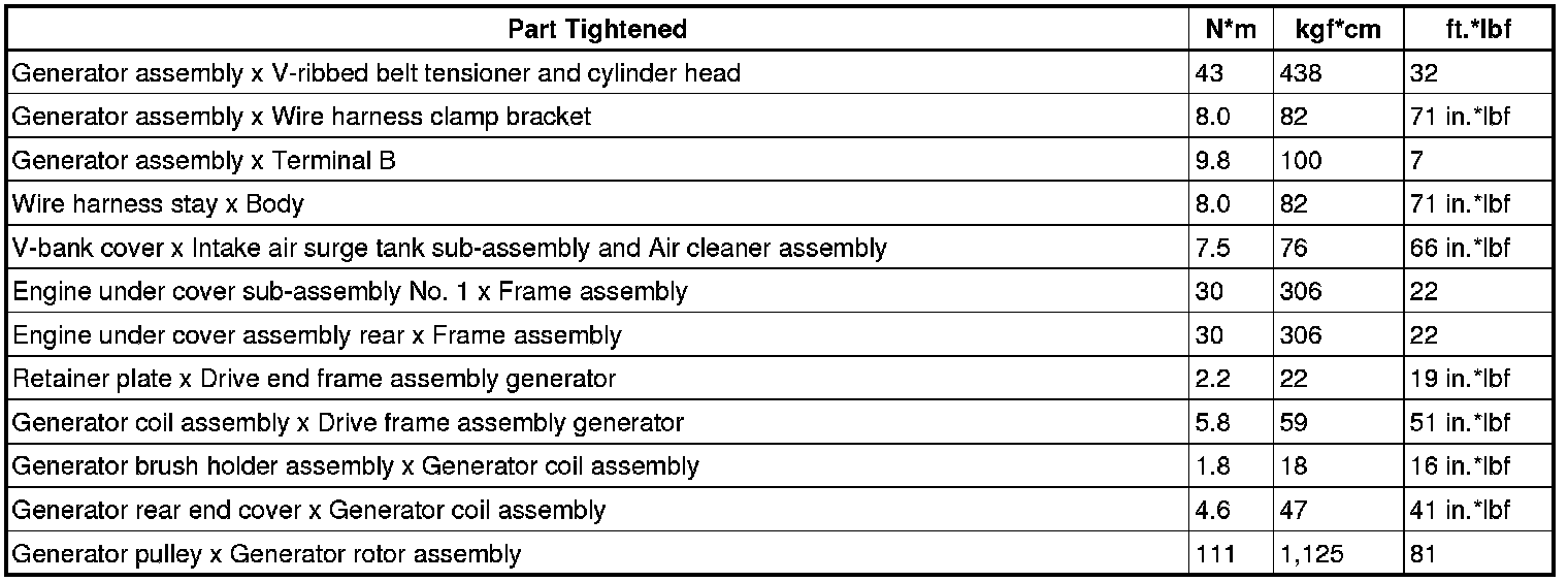 SERVICE SPECIFICATIONS: 1GR-FE CHARGING: TORQUE SPECIFICATIONS