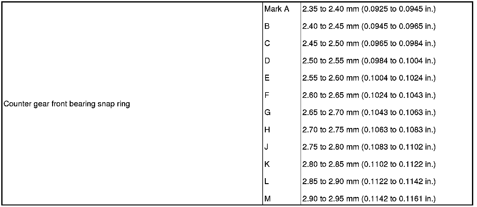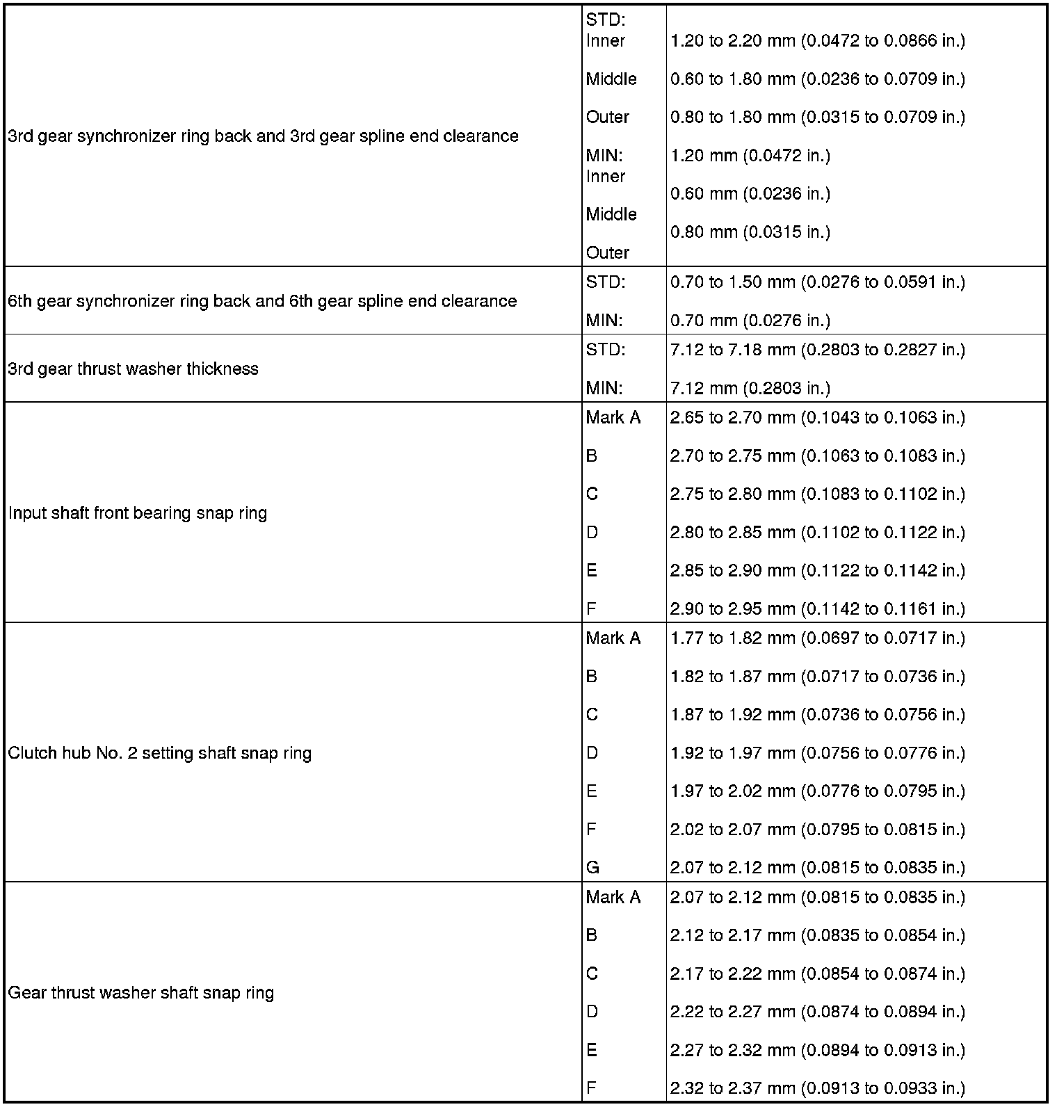 SERVICE SPECIFICATIONS: RA60F MANUAL TRANSMISSION: SERVICE DATA