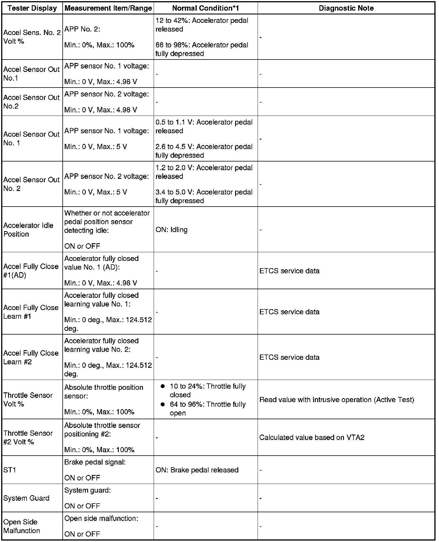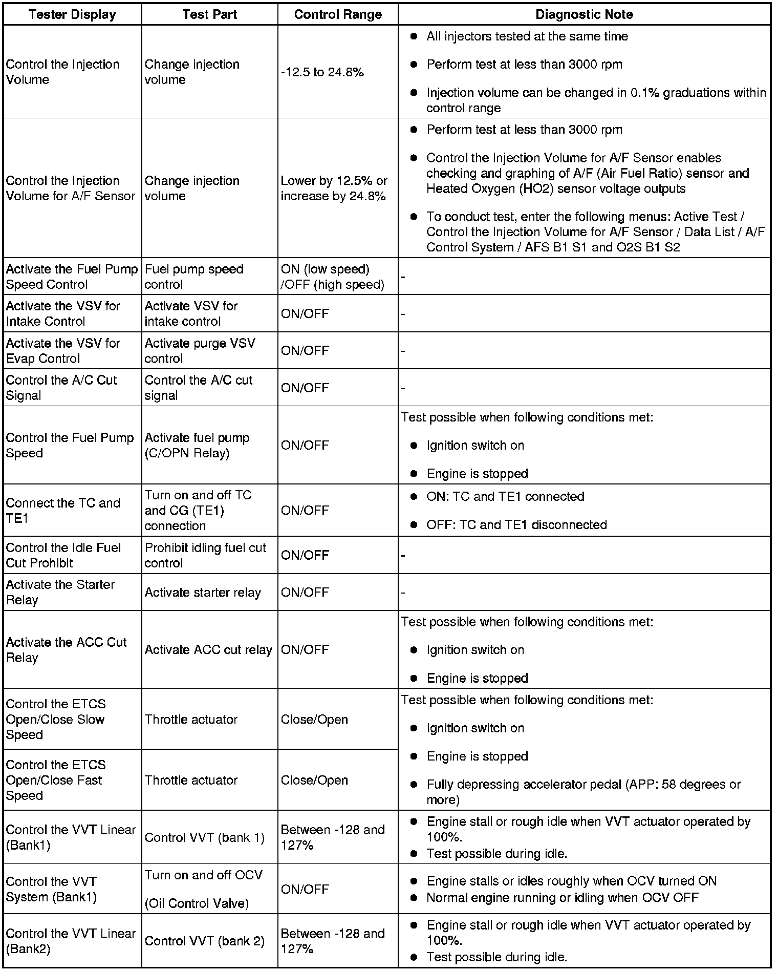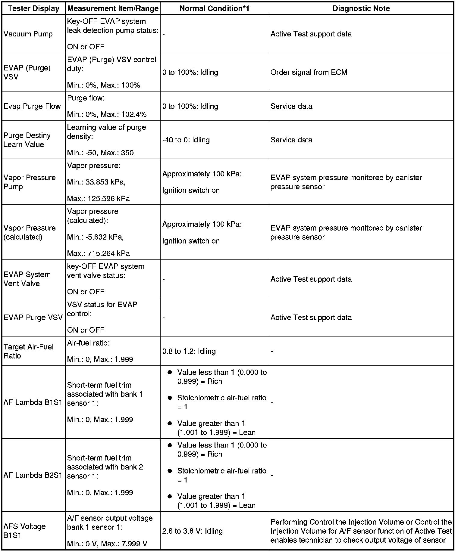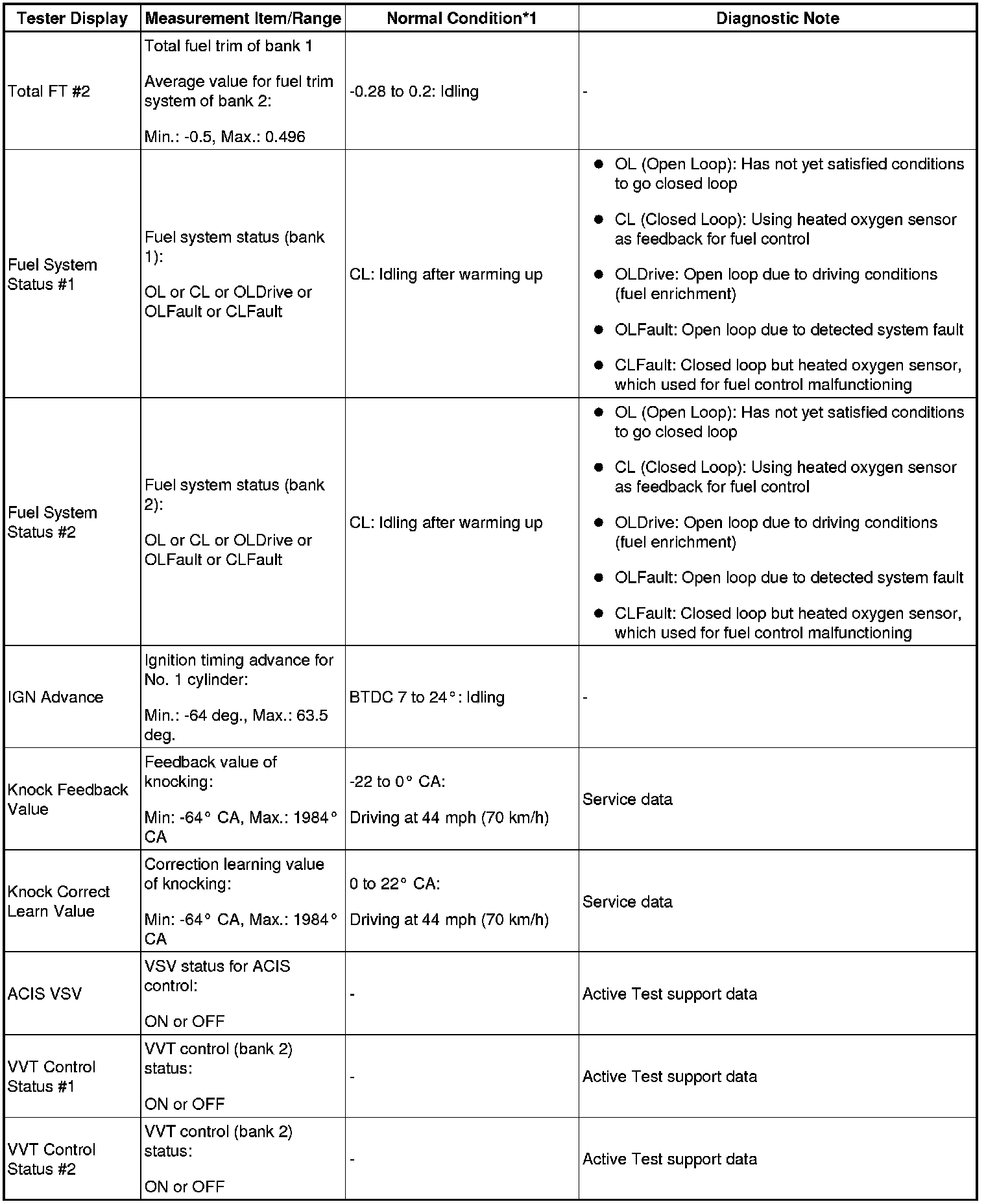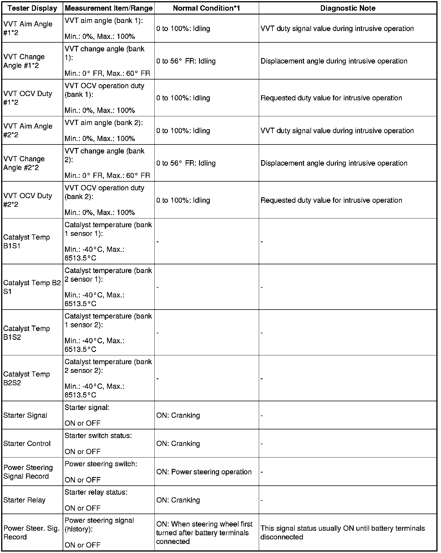 - *2: Data List values are only displayed when performing the following Active Test: Control the VVT Linear (Bank 1), Control the VVT Linear (Bank 2), Control the VVT Exhaust Linear (Bank 1) and Control the VVT Exhaust Linear (Bank 2). For other Active Tests, the Data List value will be 0.