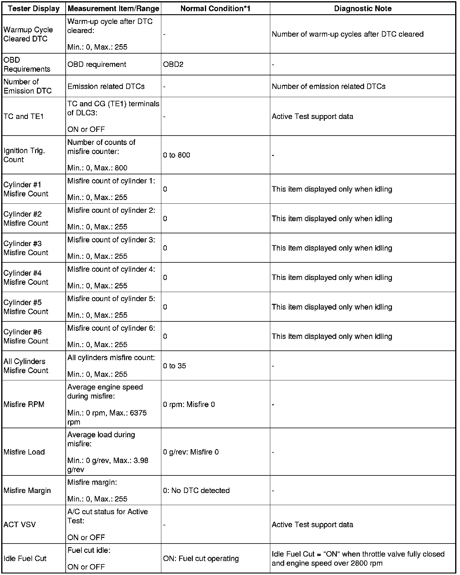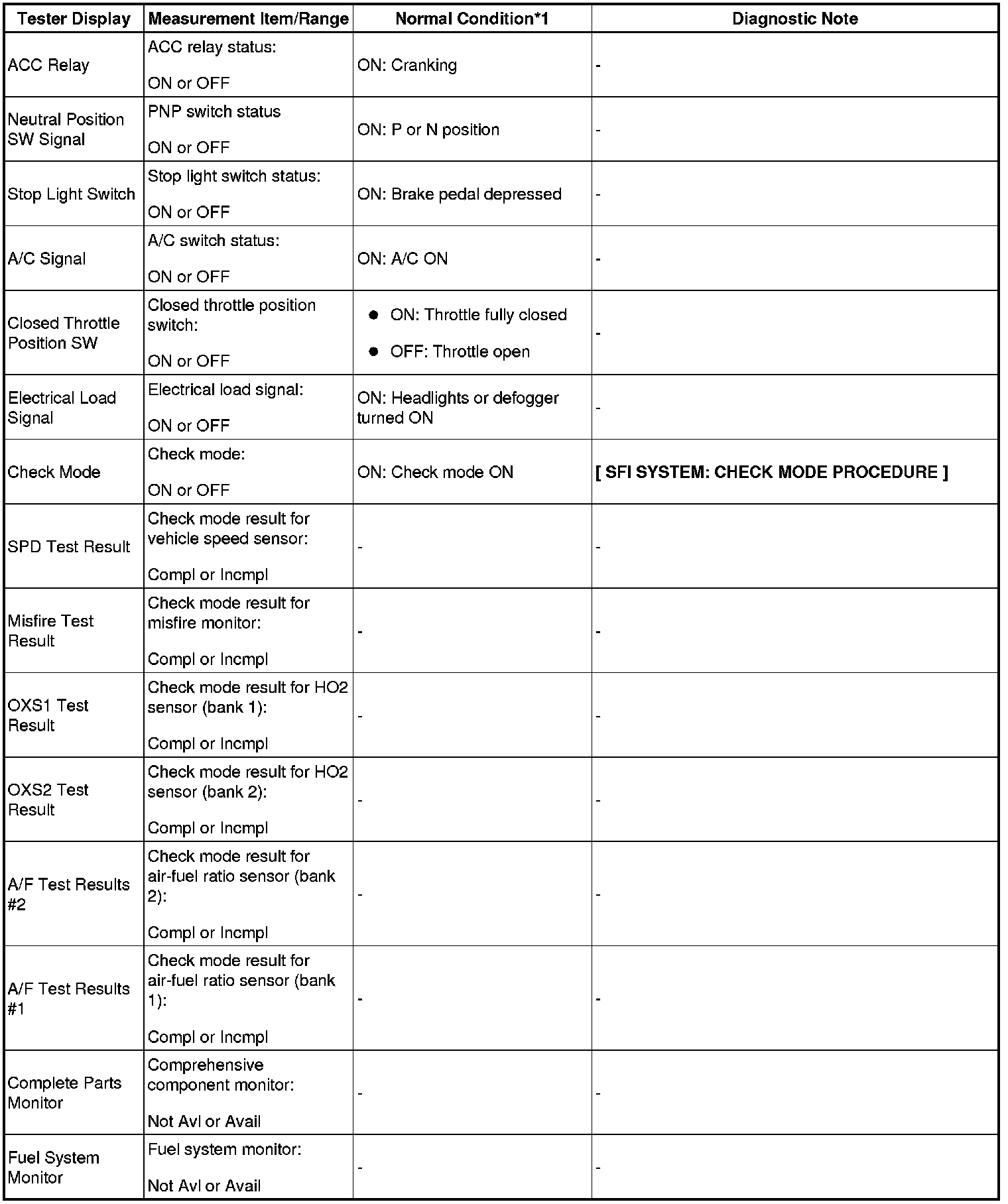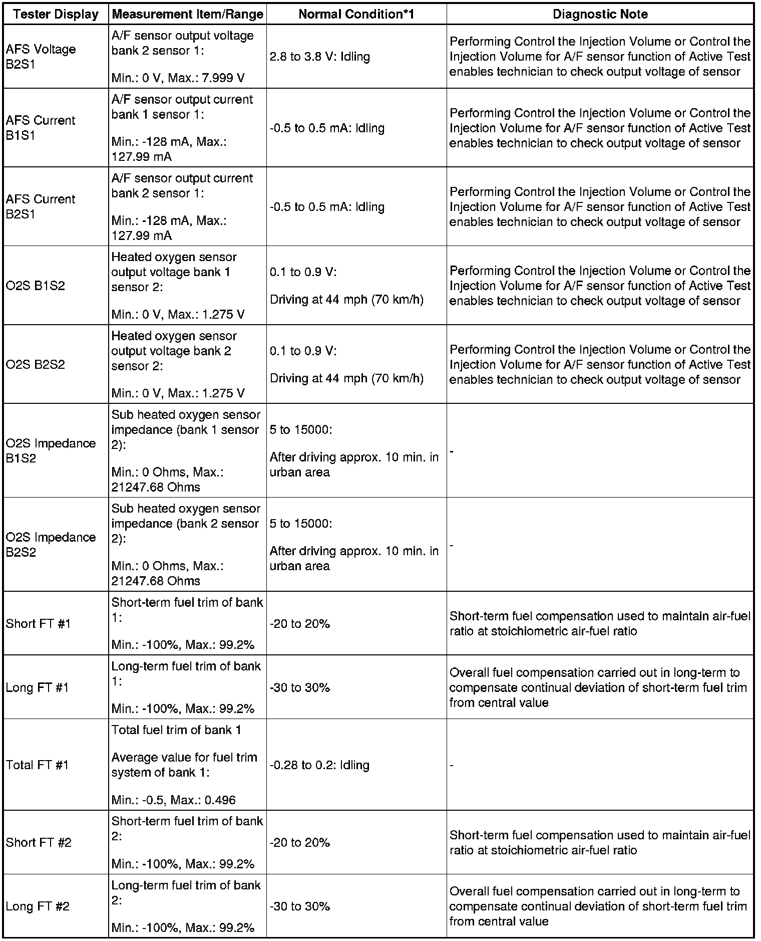 - *1: If no idling conditions are specified, the shift lever should be in the N or P position, and the A/C switch and all accessory switches should be OFF.