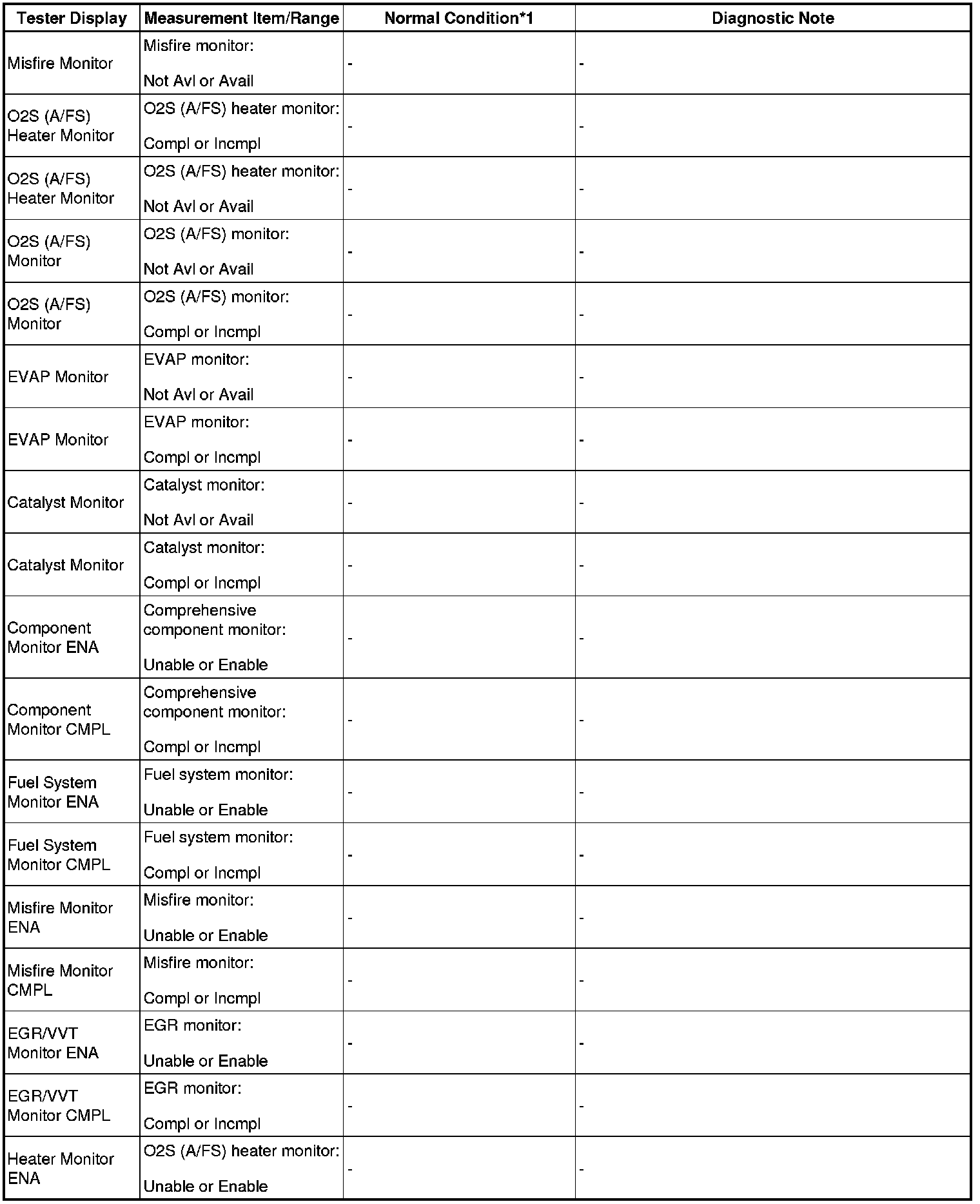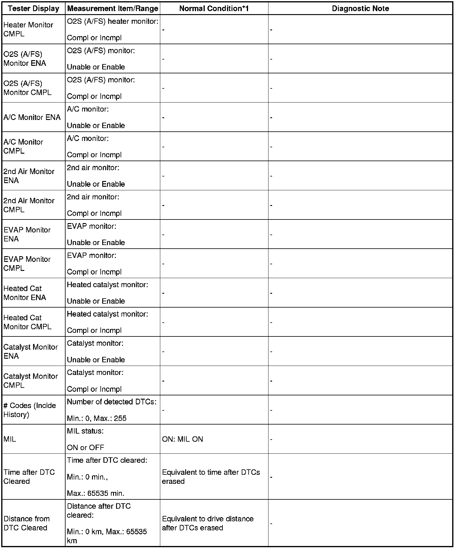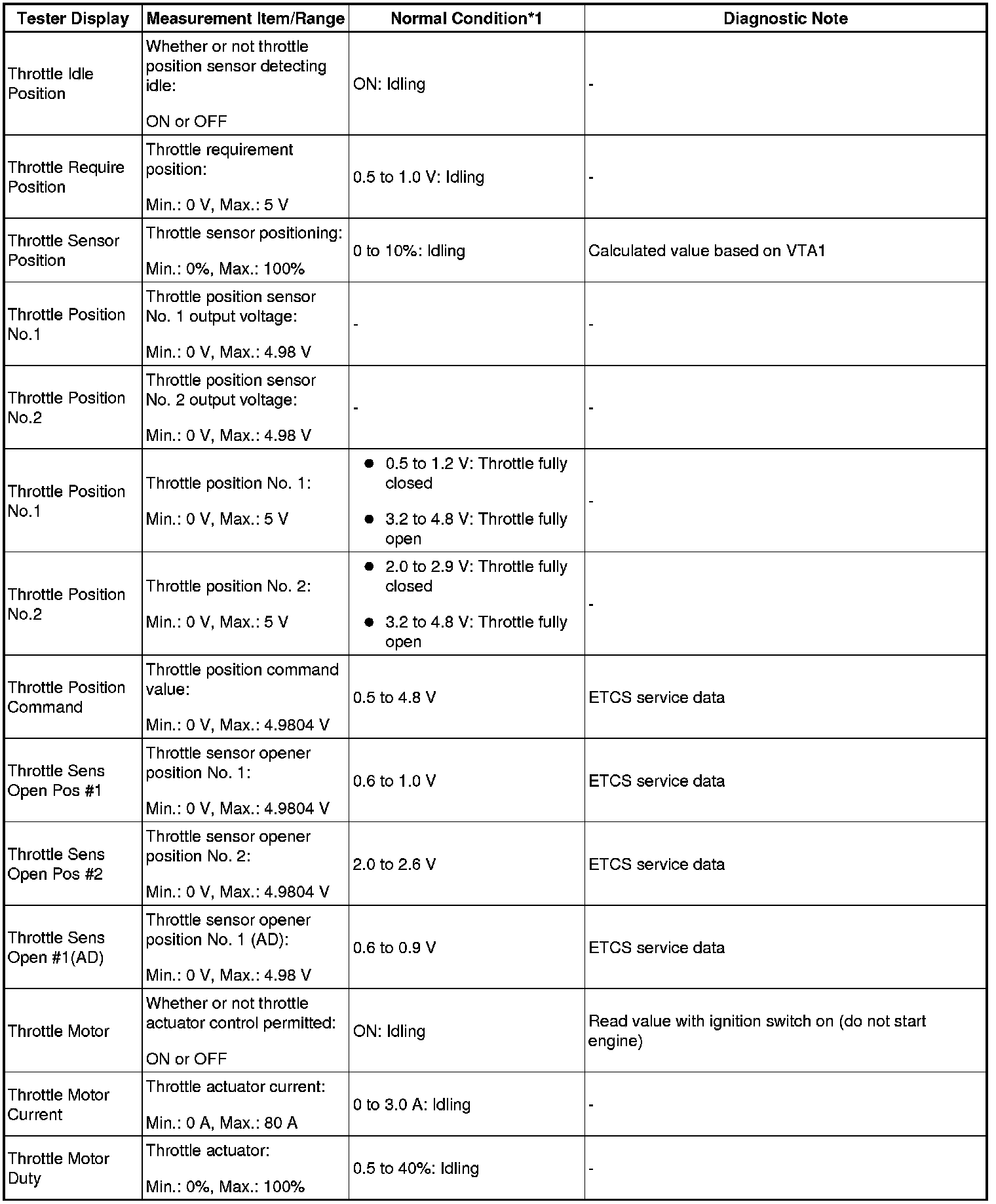 - *1: If no idling conditions are specified, the shift lever should be in the N or P position, and the A/C switch and all accessory switches should be OFF.