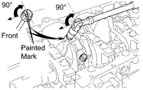 Retighten the cap bolts 90° as shown in the illustration.