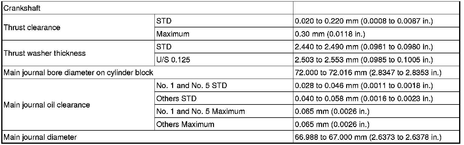 Standard oil clearance 0.005 to 0.011 mm (0.0002 to 0.0004 in.)