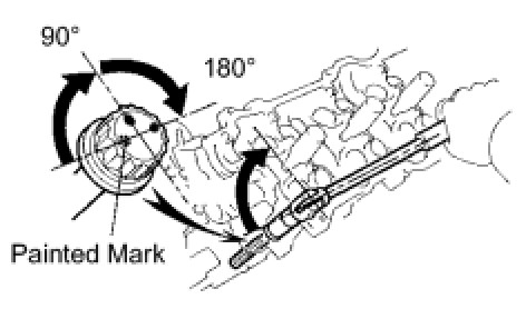 Mark the front of the cylinder head bolt head with paint.