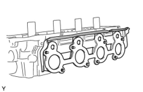 Install the exhaust manifold with 8 new nuts. Uniformly tighten the nuts in diagonally.