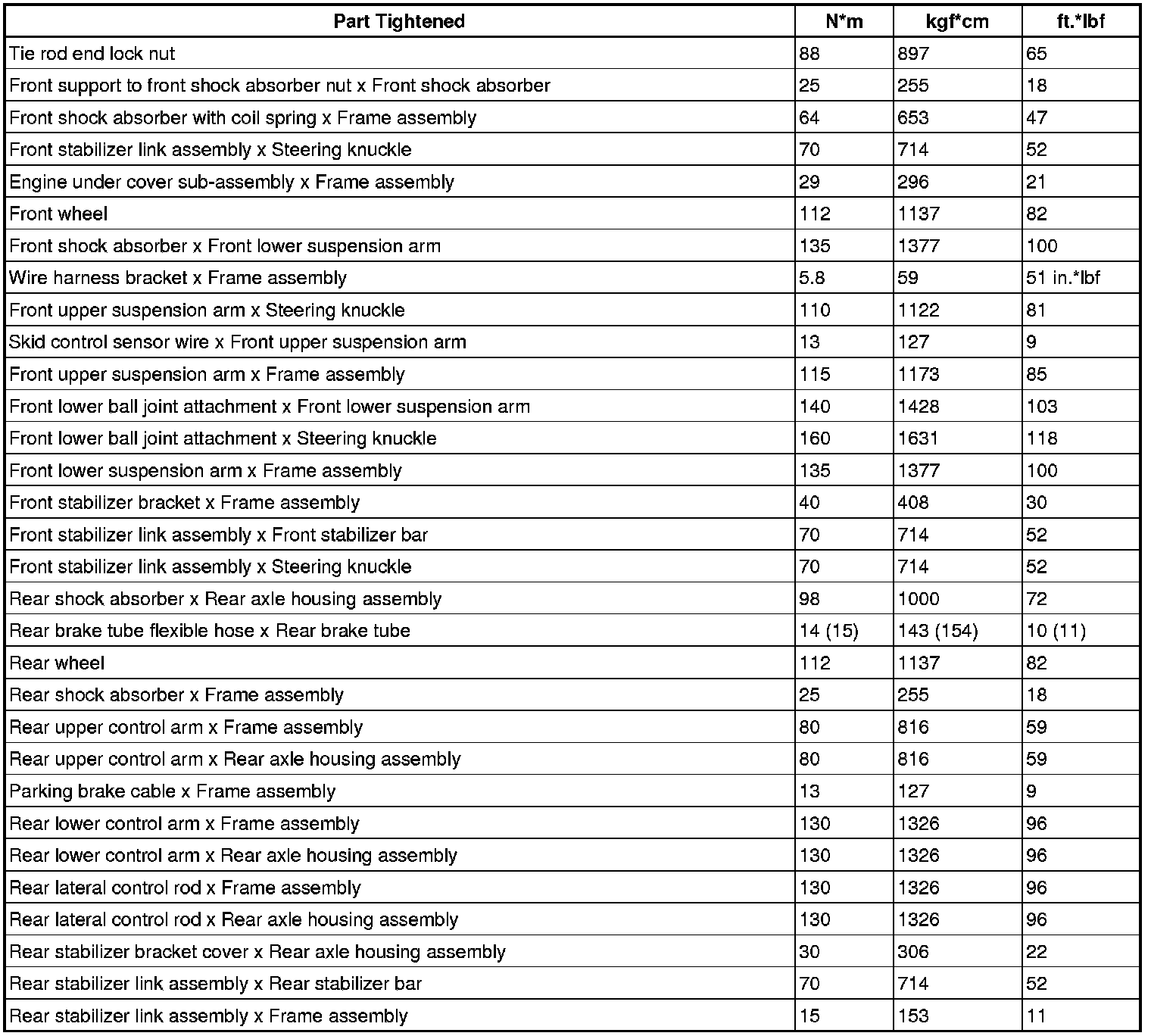 TORQUE SPECIFICATIONS