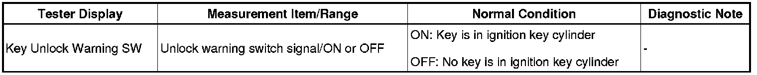 (e) Select Key Unlock Warning SW in the Data List and read the tester display.
