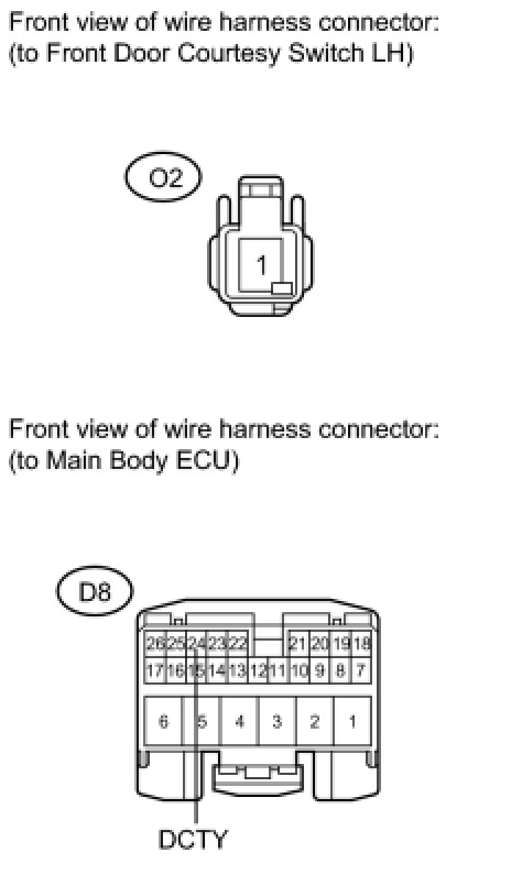 4. CHECK HARNESS AND CONNECTOR (FRONT DOOR COURTESY SWITCH CIRCUIT)