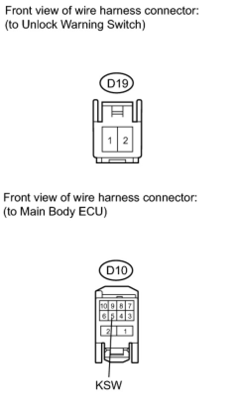 6. CHECK HARNESS AND CONNECTOR (UNLOCK WARNING SWITCH CIRCUIT)