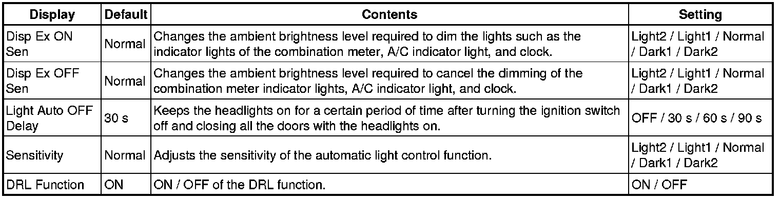 - Before troubleshooting the lighting system, pay attention because there is a possibility that a function has been disabled by customizing. (Example: If "The wireless operation does not function", check that the wireless operation has not been disabled by customizing, then perform the troubleshooting.)