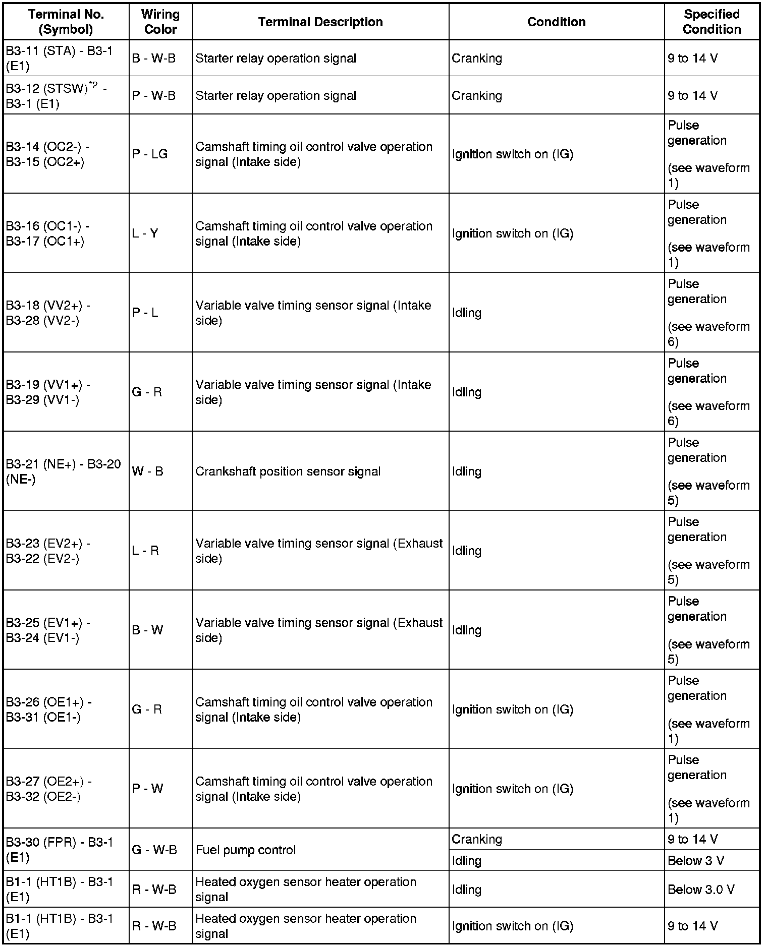(1) Variable Valve Timing (VVT) sensor signal (1)