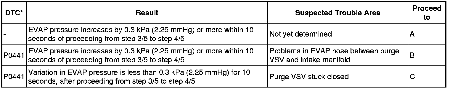 *: The DTCs related to the EVAP system are displayed on the Techstream when checking.