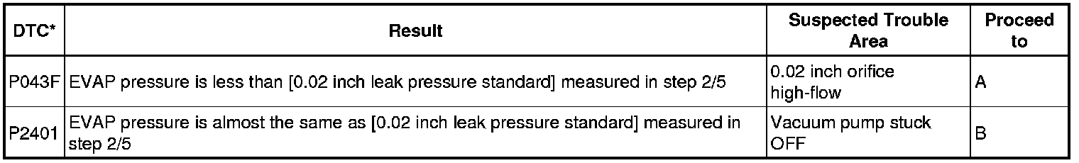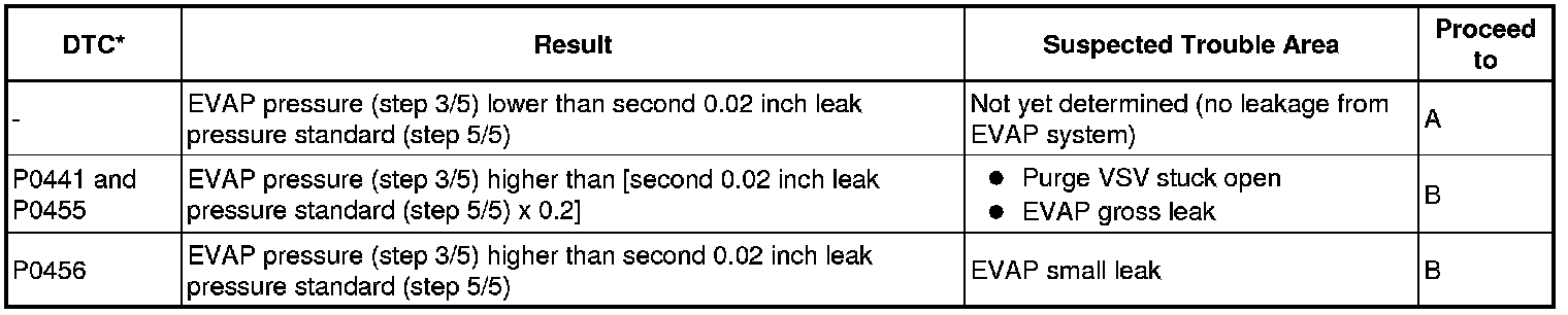 (b) Compare the EVAP pressure in step 3/5 and the second 0.02 inch leak pressure standard (step 5/5).