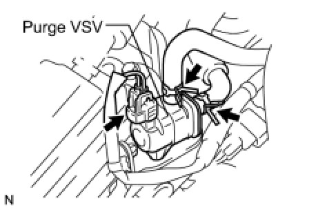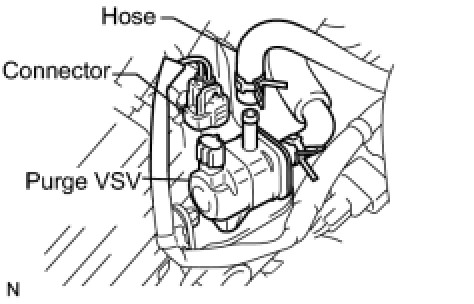 (a) Disconnect the hose (connected to the throttle body) from the purge VSV.