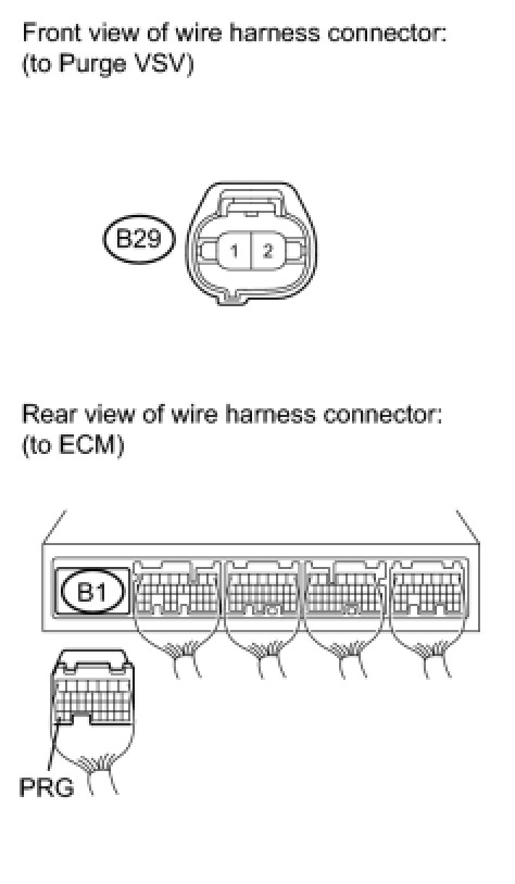 (a) Disconnect the ECM connector and the purge VSV connector.