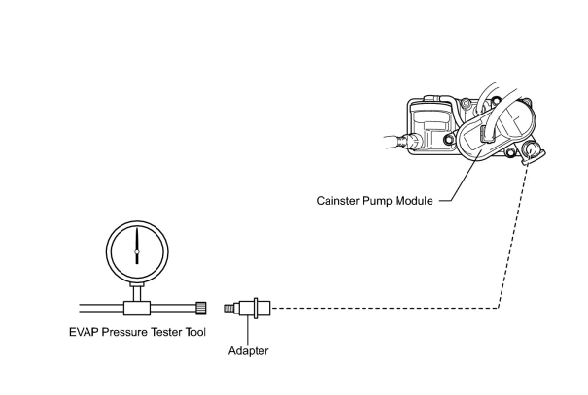 (b) Connect the EVAP pressure tester tool to the canister with the adapter.