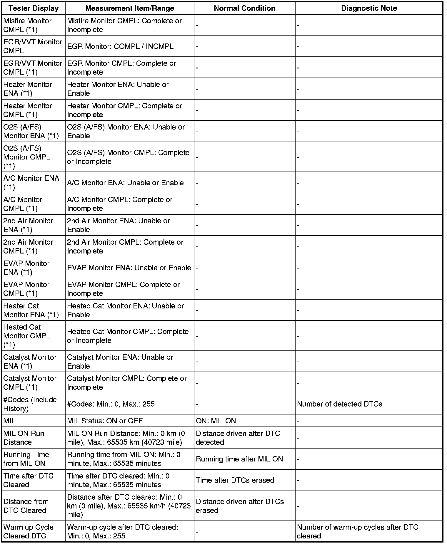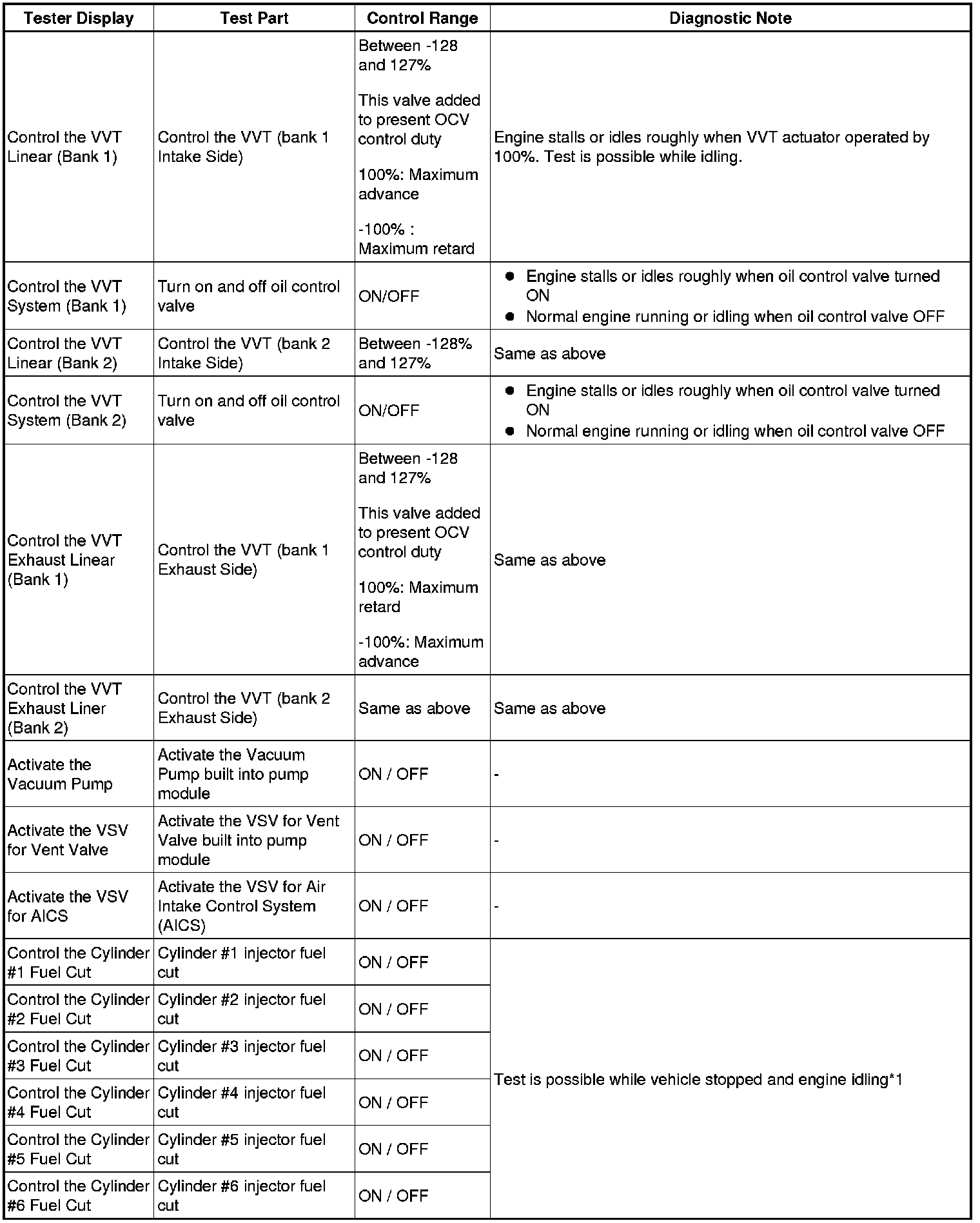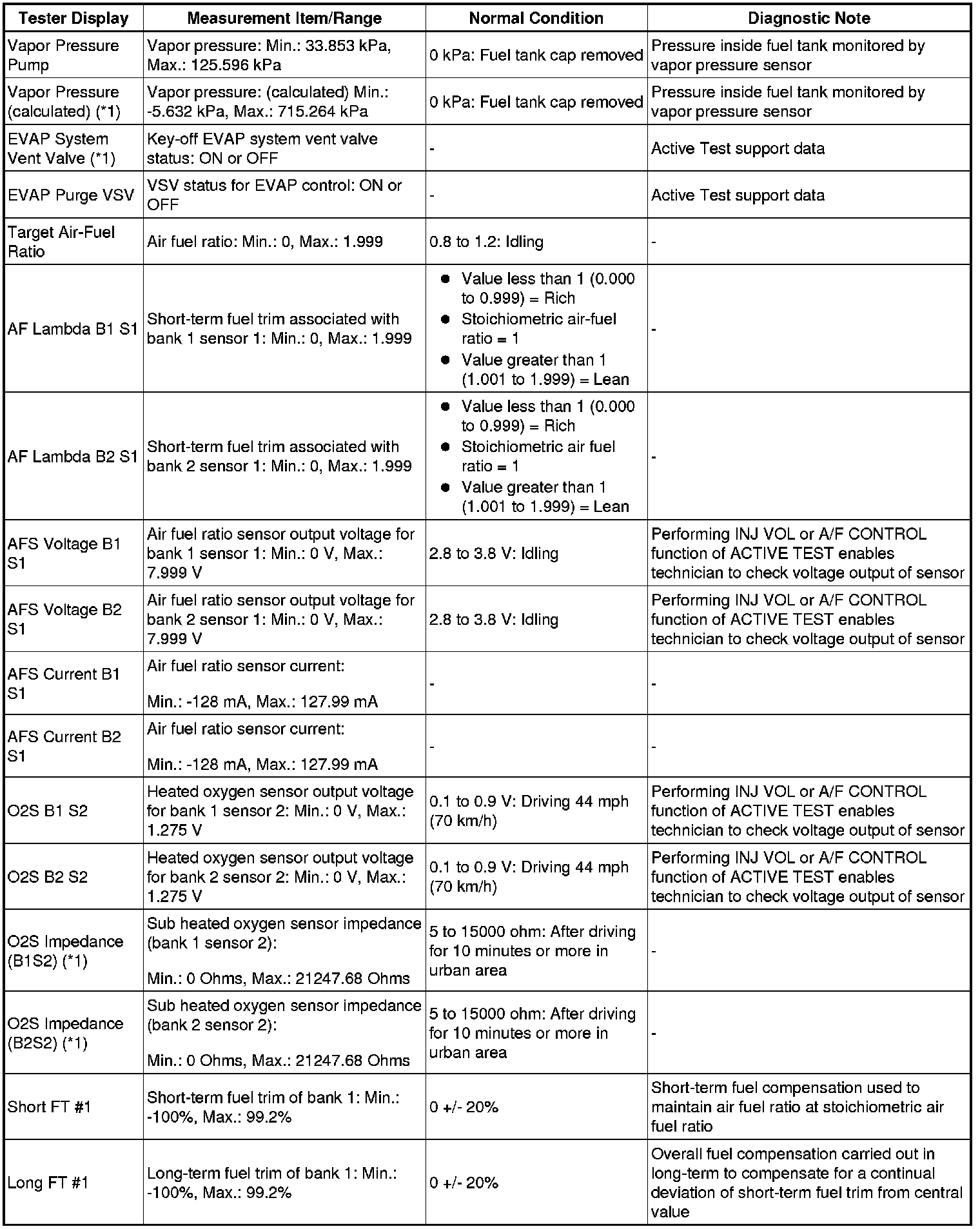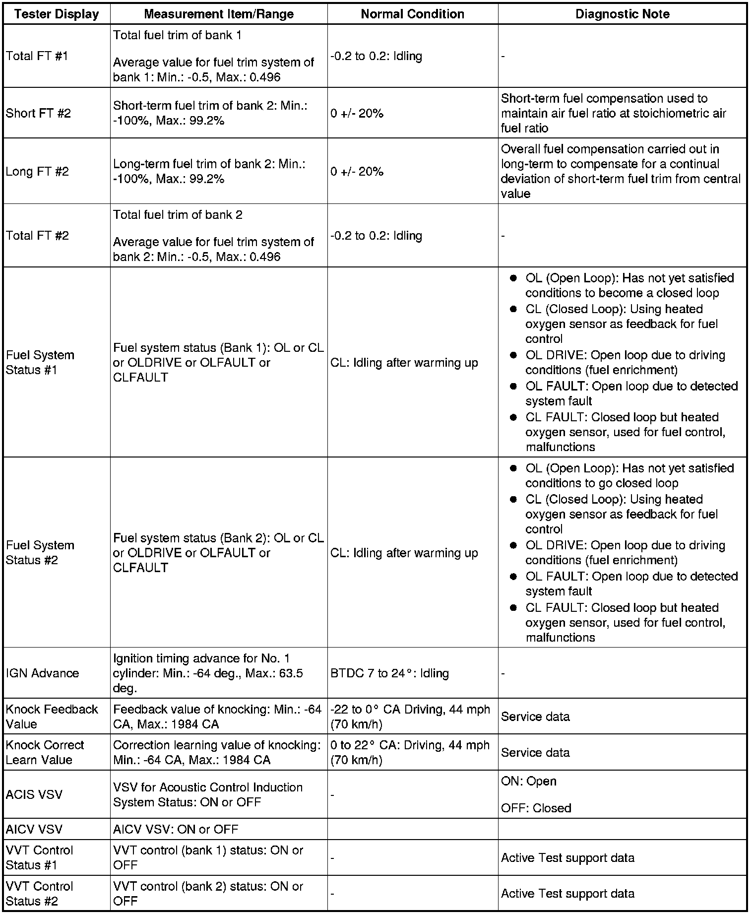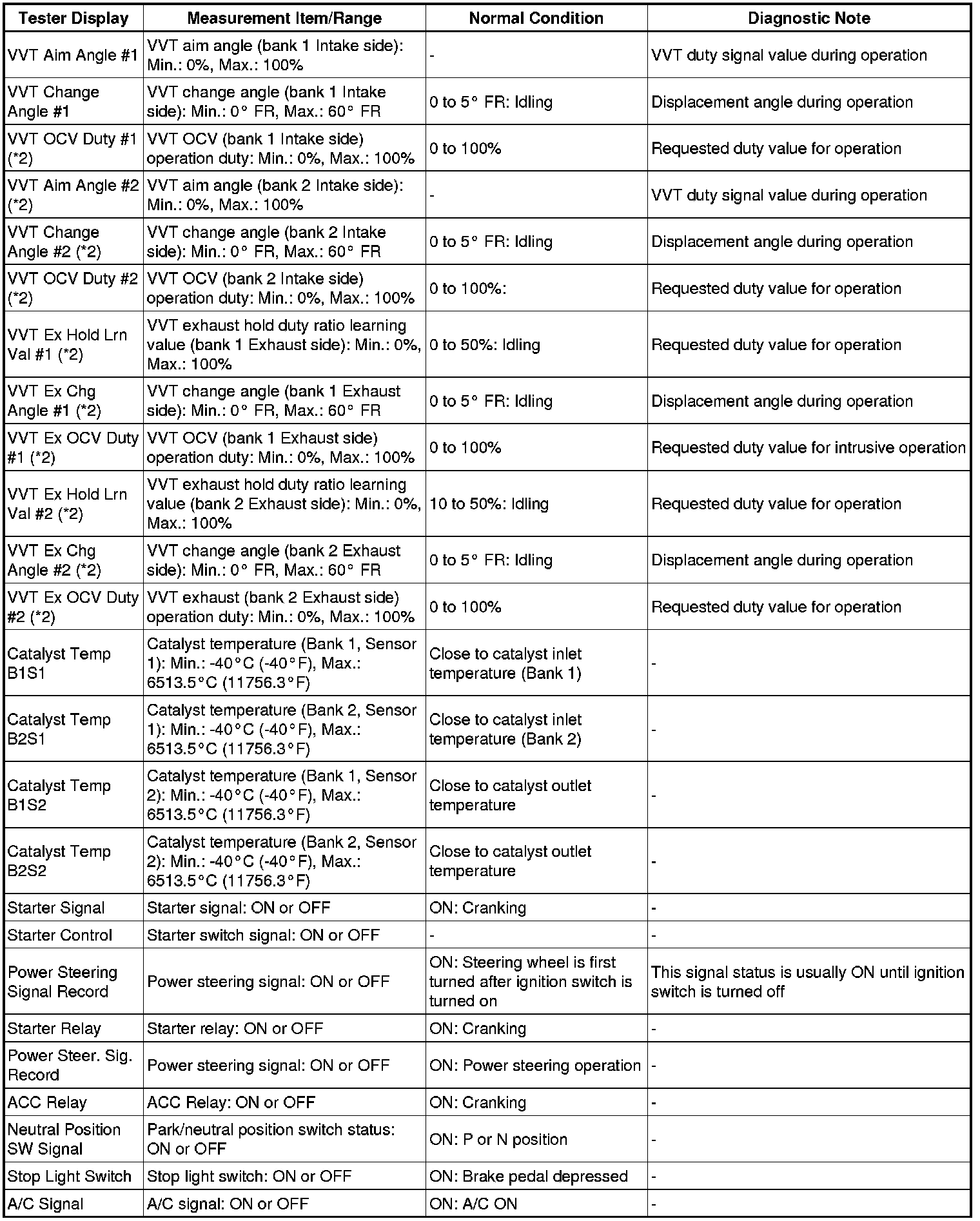 *2: Values are only displayed when performing the Active Test: Control the VVT Linear (Bank 1 or Bank 2) or Control the VVT Exhaust Linear (Bank 1 or Bank 2). For other Active Tests, the value will be 0.