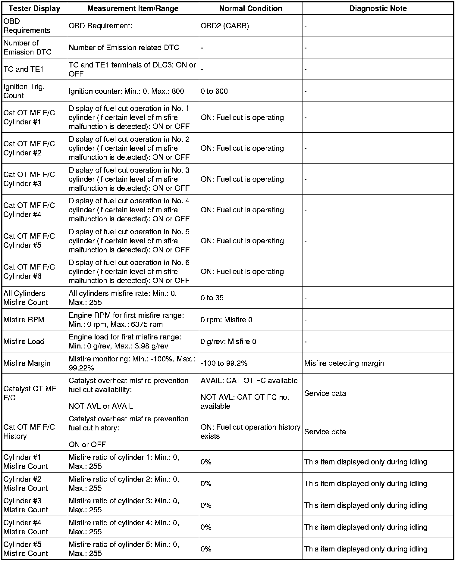 - *1: If the display of the Data List's Catalyst OT MF F/C item is Not Avl, perform this Active Test with the vehicle stopped and the engine idling.