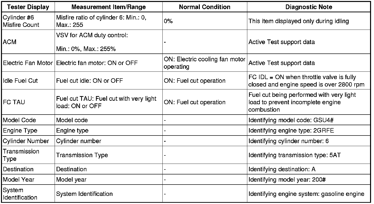 2GR-FE ENGINE CONTROL SYSTEM: SFI SYSTEM: DATA LIST / ACTIVE TEST