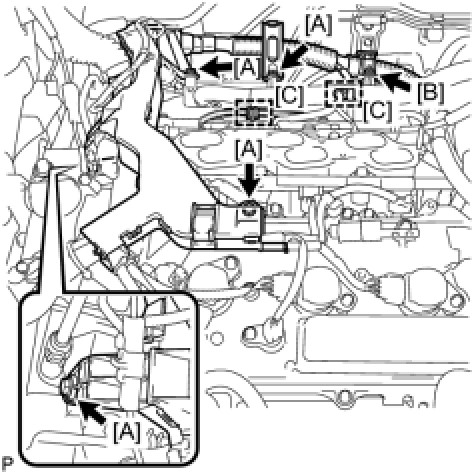 (e) Install the 2 clamps [C].