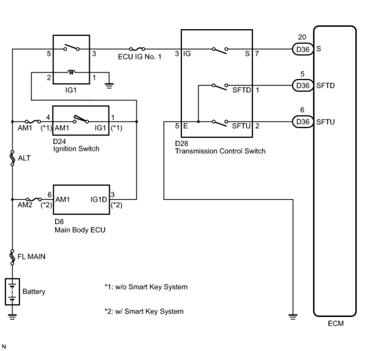 U151F AUTOMATIC TRANSAXLE: AUTOMATIC TRANSAXLE SYSTEM: Transmission Control Switch Circuit