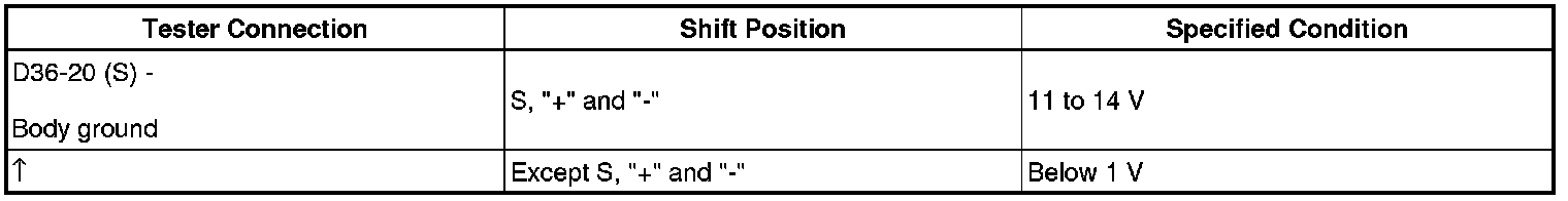 (c) Measure the voltage according to the value(s) in the table below when the shift lever is moved to each position.