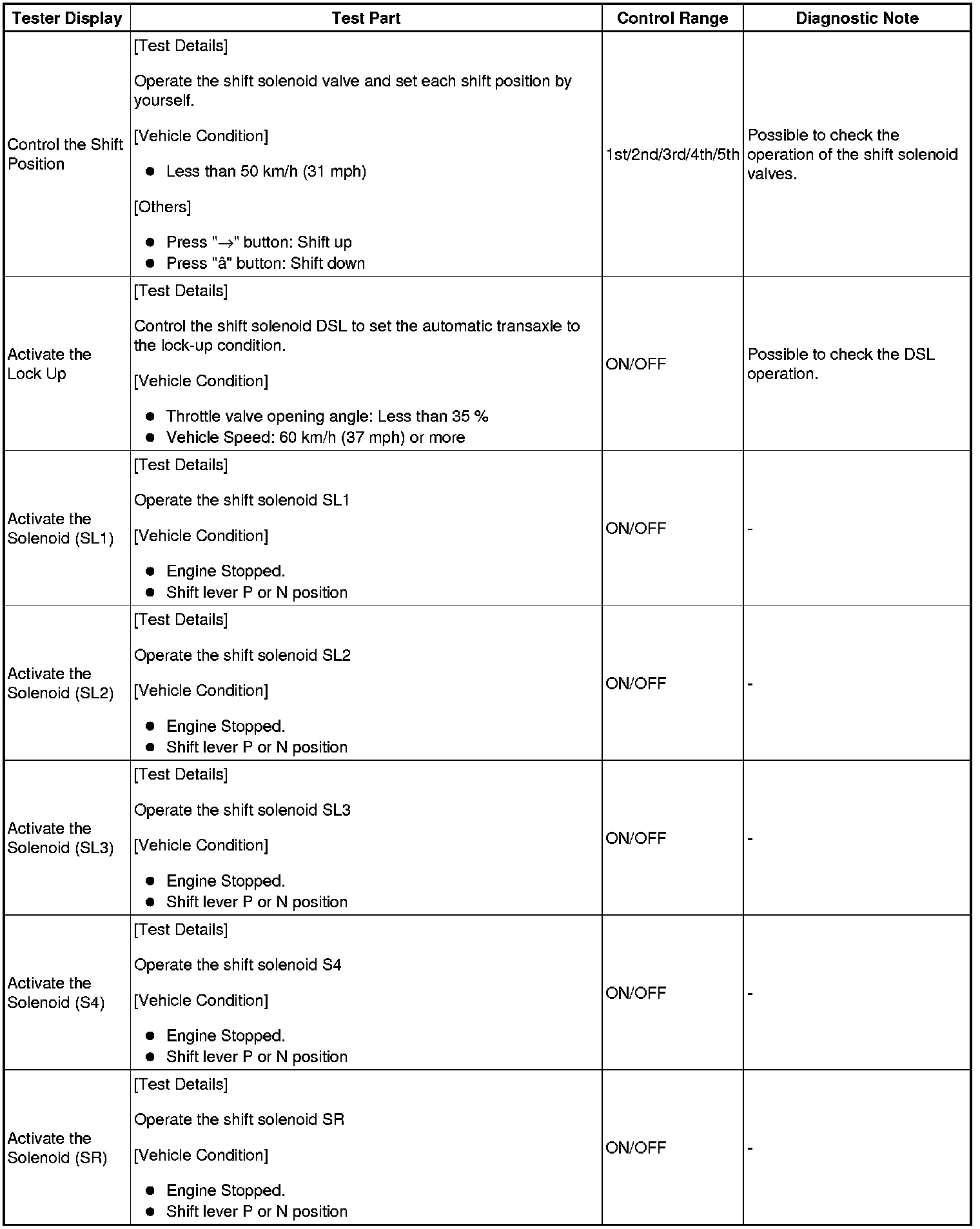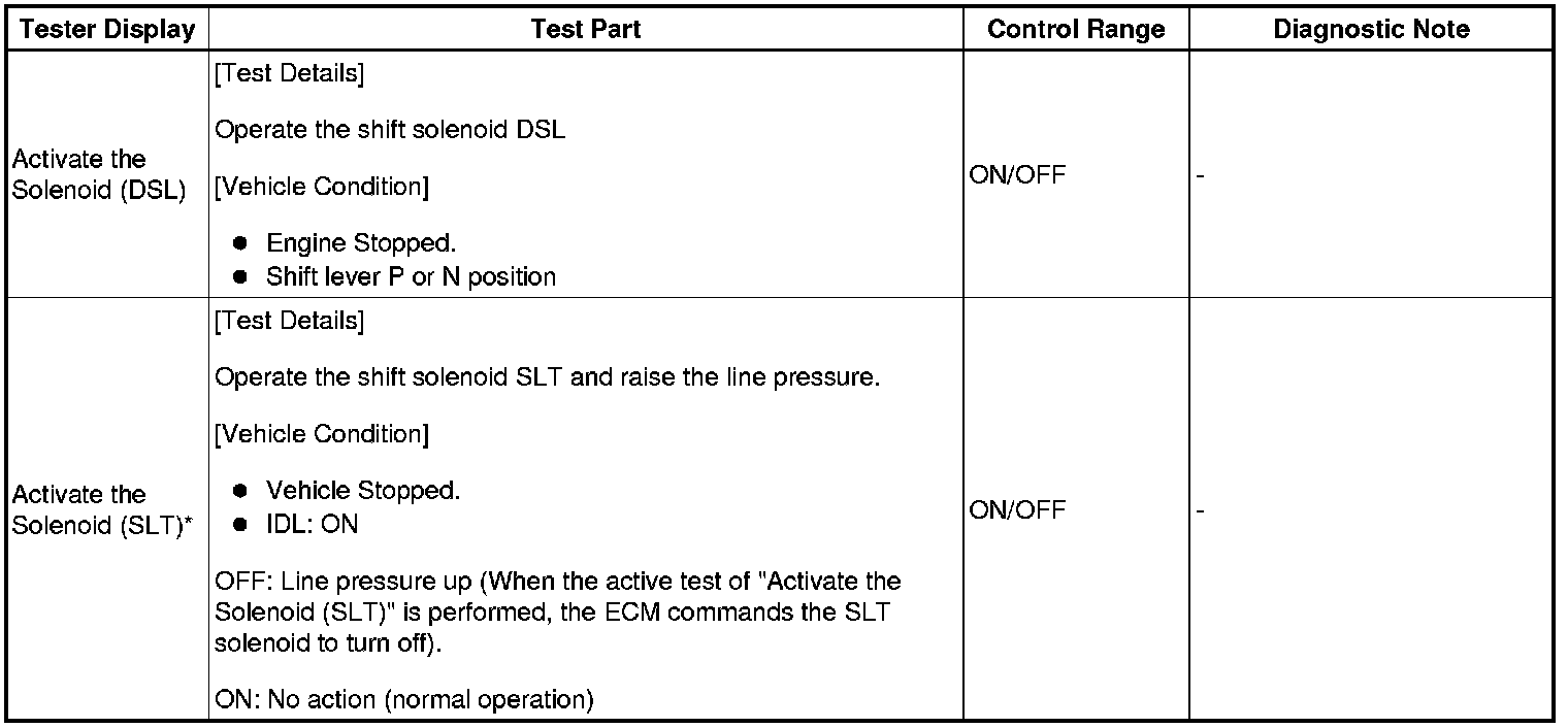 *: "Activate the Solenoid (SLT)" in the Active Test is performed to check the line pressure changes by connecting the SST to the automatic transaxle, which is used in the HYDRAULIC TEST Hydraulic Test as well.