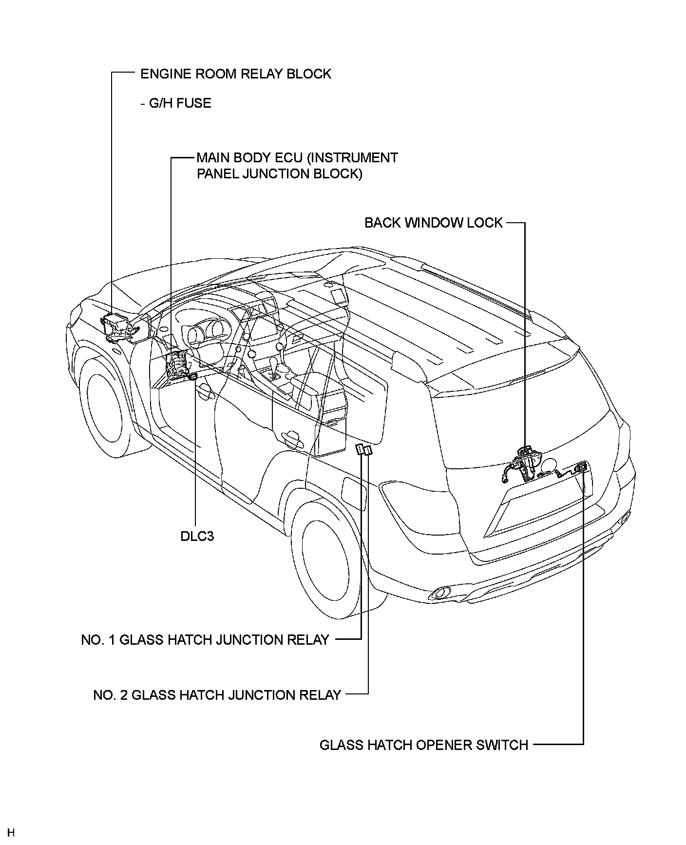 WINDSHIELD / WINDOWGLASS: GLASS HATCH OPENER SYSTEM: PARTS LOCATION