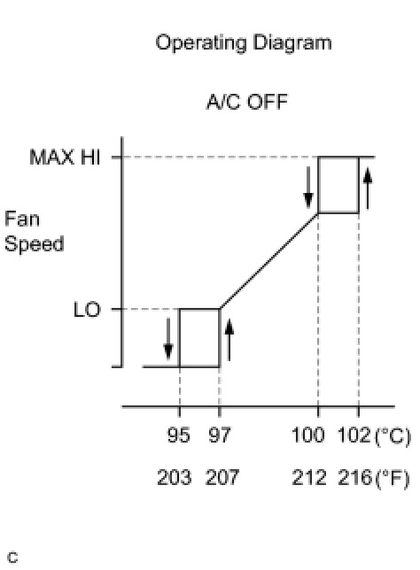 - The coolant temperature at which the fan starts operating is approximately 97°C (207°F).