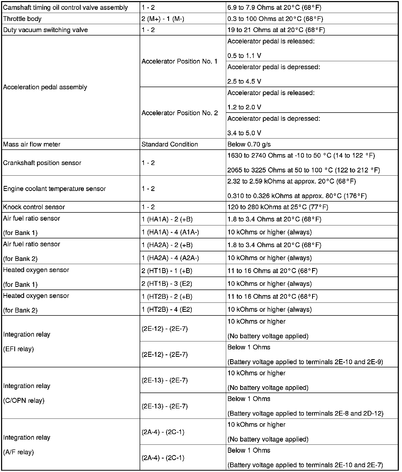 SERVICE SPECIFICATIONS: 2GR-FE ENGINE CONTROL SYSTEM: SERVICE DATA