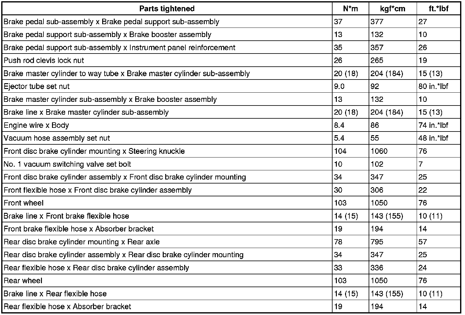 SERVICE SPECIFICATIONS: BRAKE: TORQUE SPECIFICATIONS