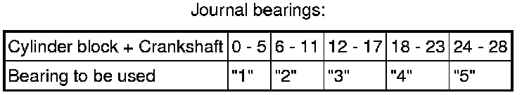 EXAMPLE: Cylinder block "11" + Crankshaft "06" = Total number 17 (Use bearing "3")