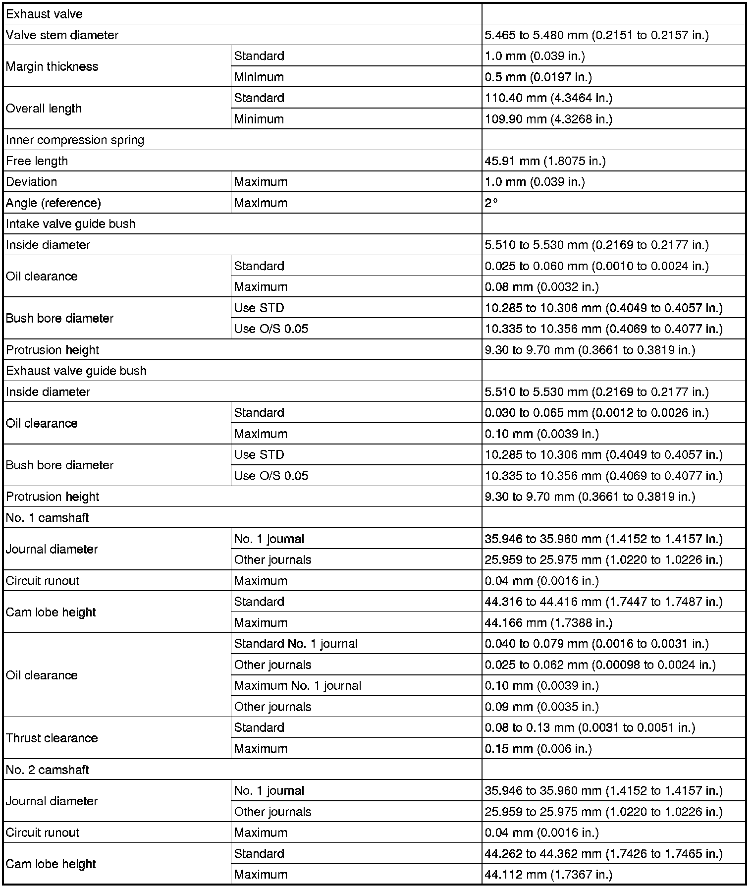 SERVICE SPECIFICATIONS: 2GR-FE ENGINE MECHANICAL: SERVICE DATA