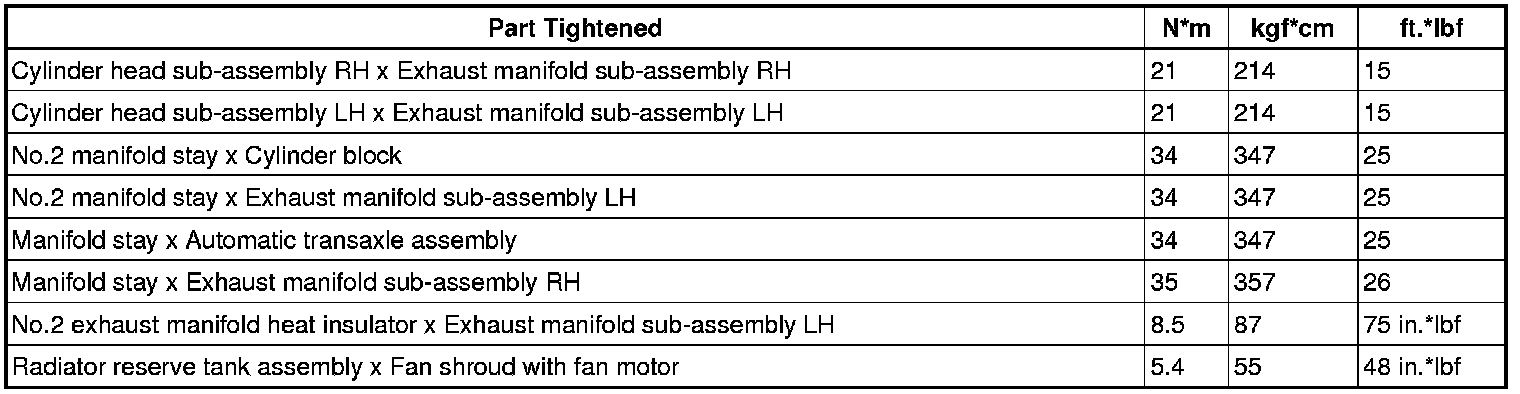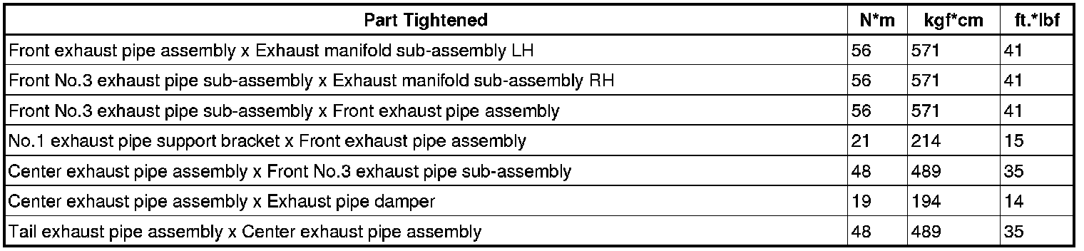SERVICE SPECIFICATIONS: 2GR-FE EXHAUST: TORQUE SPECIFICATIONS