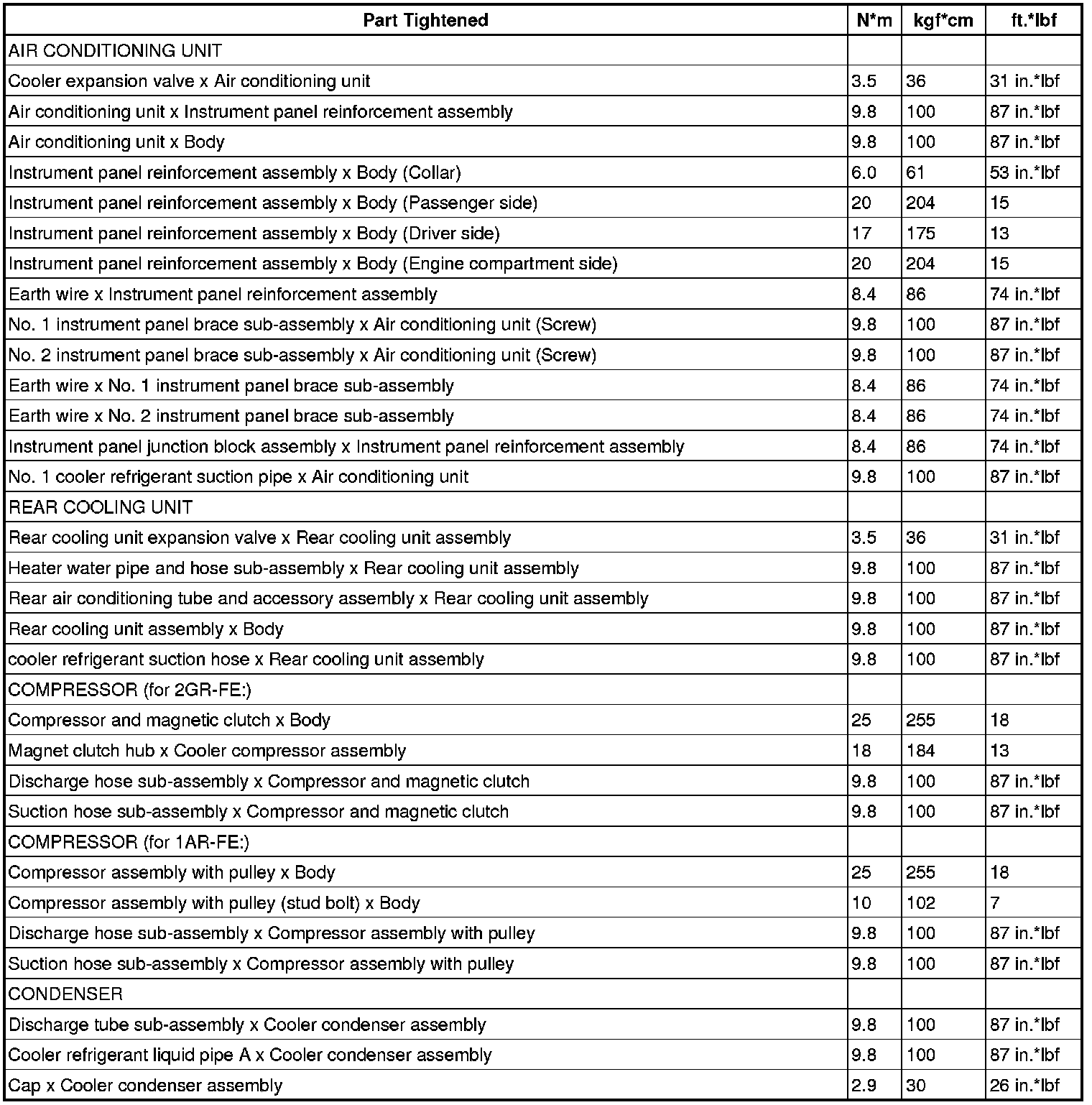 SERVICE SPECIFICATIONS: AIR CONDITIONING: TORQUE SPECIFICATIONS