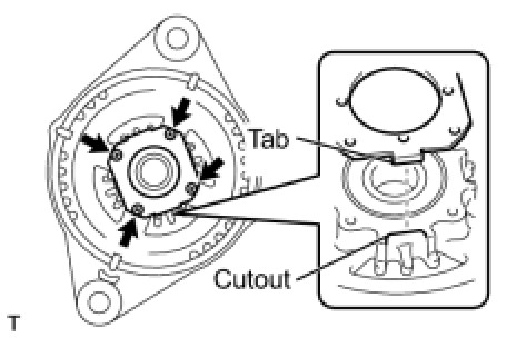 (d) Fit the tabs on the retainer plate into the cutouts on the drive end frame to install the retainer plate.