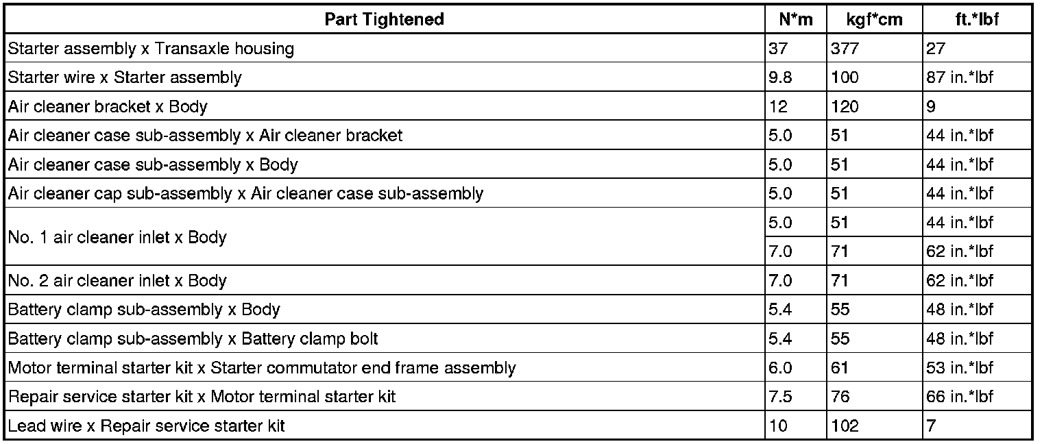 SERVICE SPECIFICATIONS: 2GR-FE STARTING: TORQUE SPECIFICATIONS