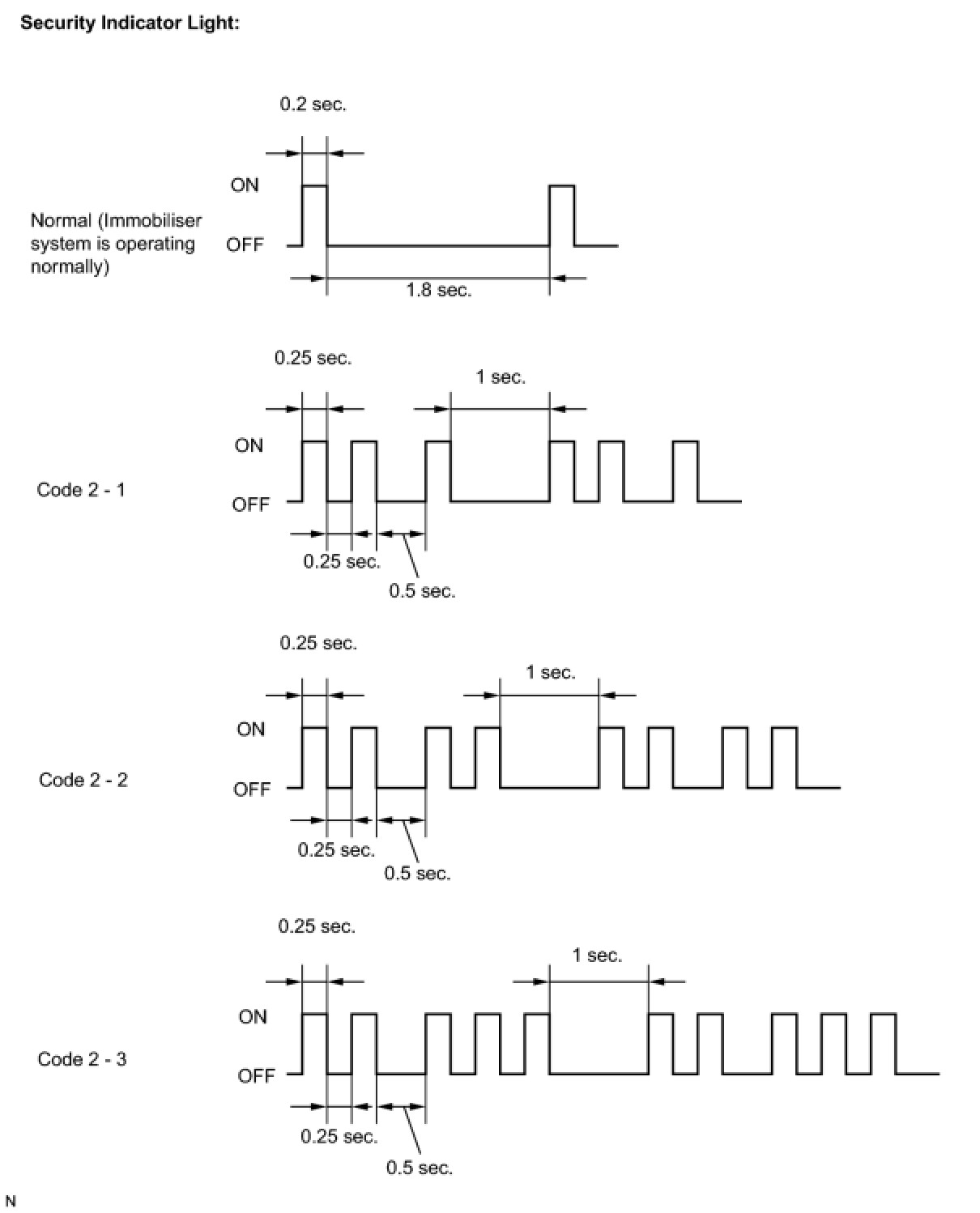 - When the engine immobiliser system is operating normally and the key is pulled out, the security indicator light blinks continuously.