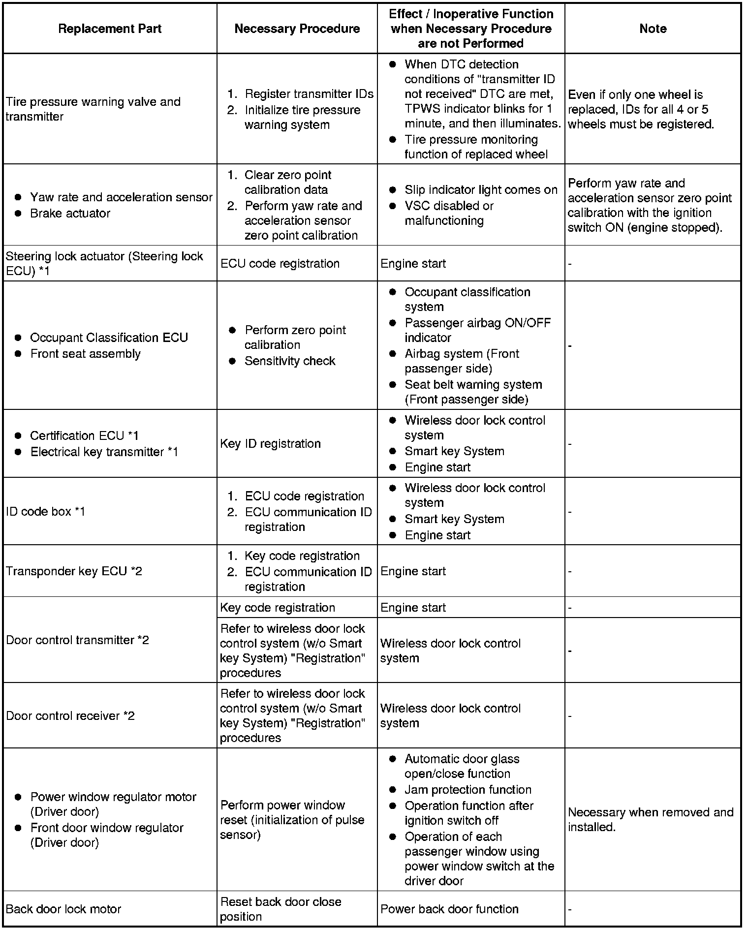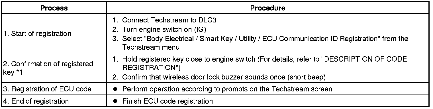 - *1: Perform this process for one of the keys registered for the vehicle. Finish the procedure within 30 seconds. If the procedure has not been finished within the specified time, perform the registration procedures again from process 1.