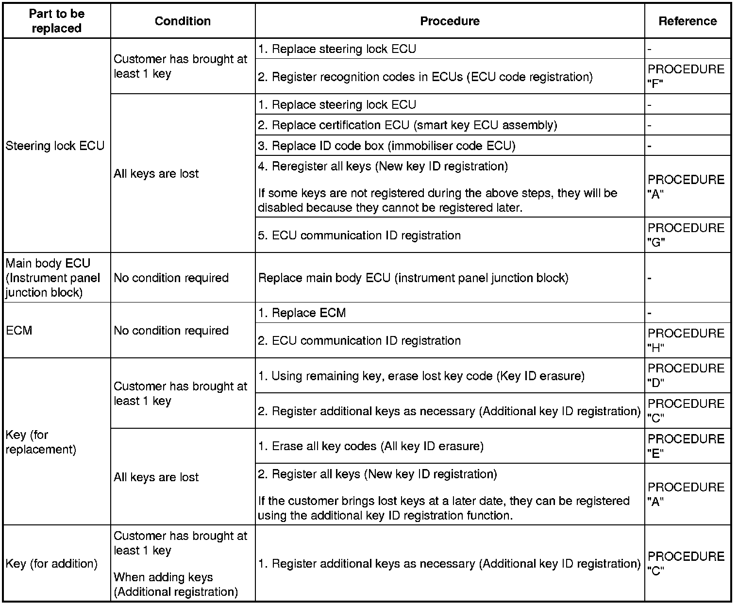 NOTE: The ECU communication ID should be registered when the ECM and transponder key ECU are replaced or when the ECM only is replaced in order to match the ECU communication ID.