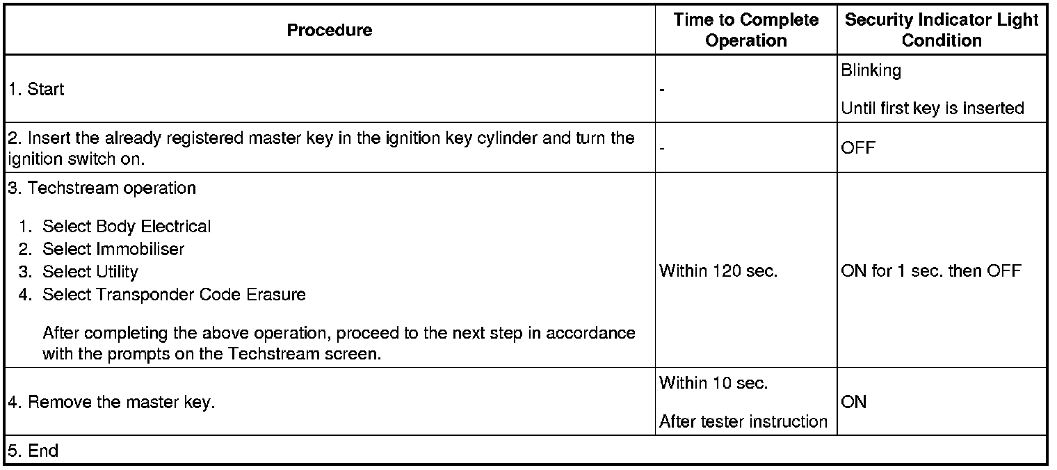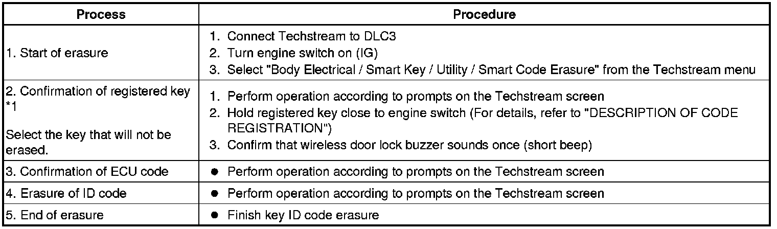 - *1: Perform this process for one of the keys registered for the vehicle. Finish the procedure within 30 seconds. If the procedure has not been finished within the specified time, perform the erasure procedures again from process 1.