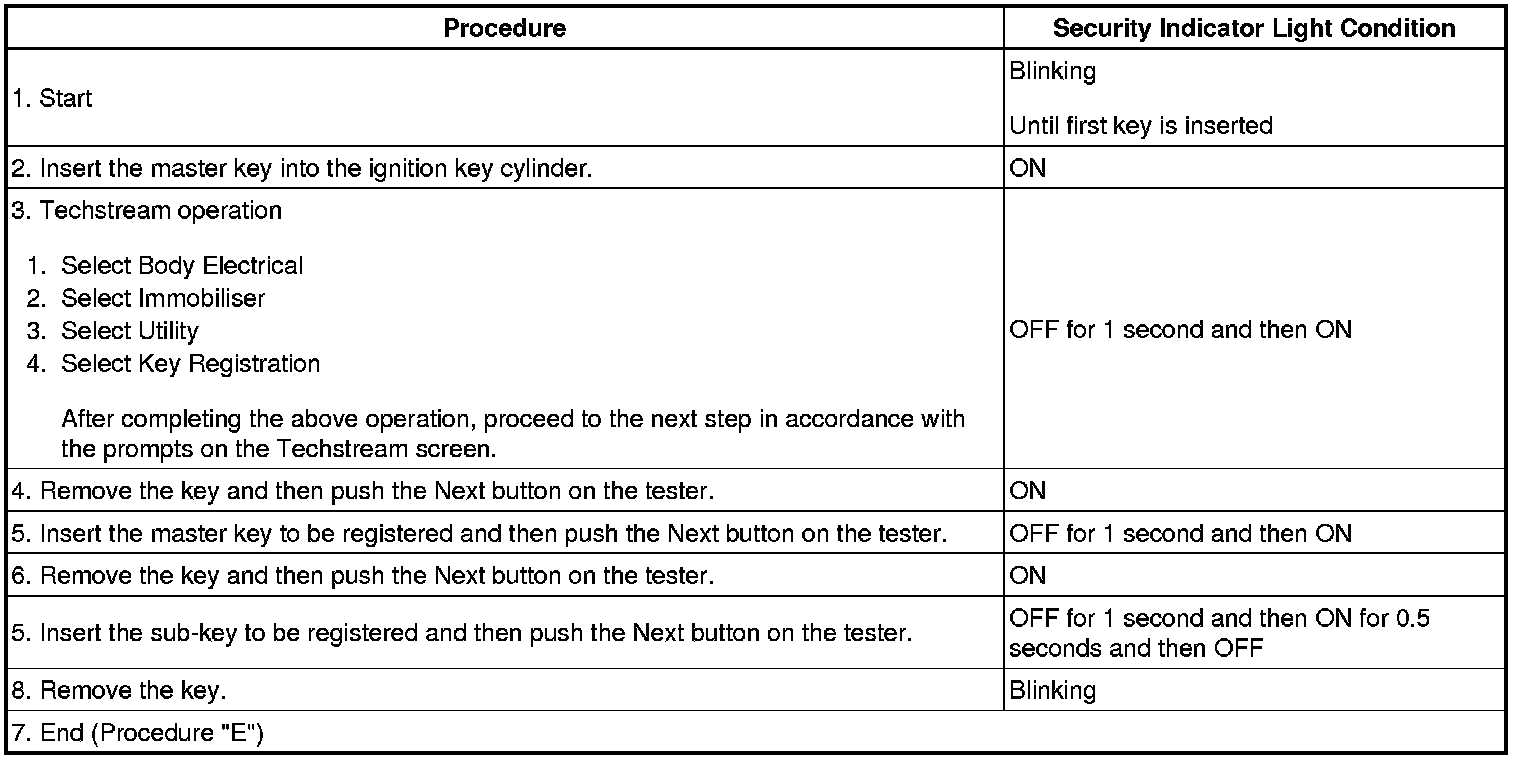 14. REGISTRATION OF ADDITIONAL KEY (Engine Immobiliser System (w/o Smart Key System))